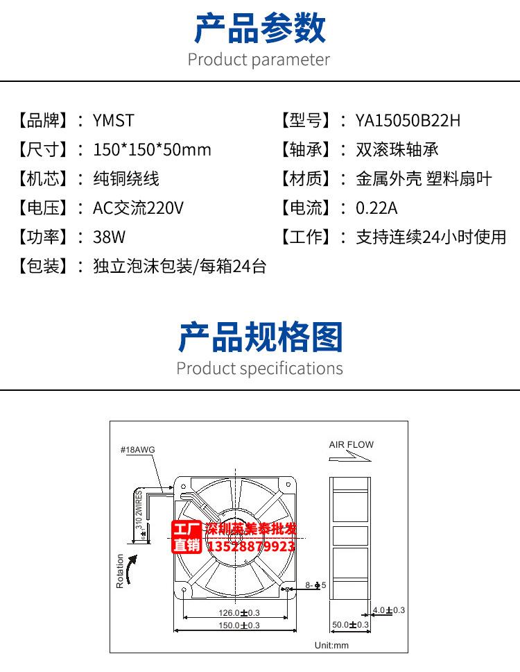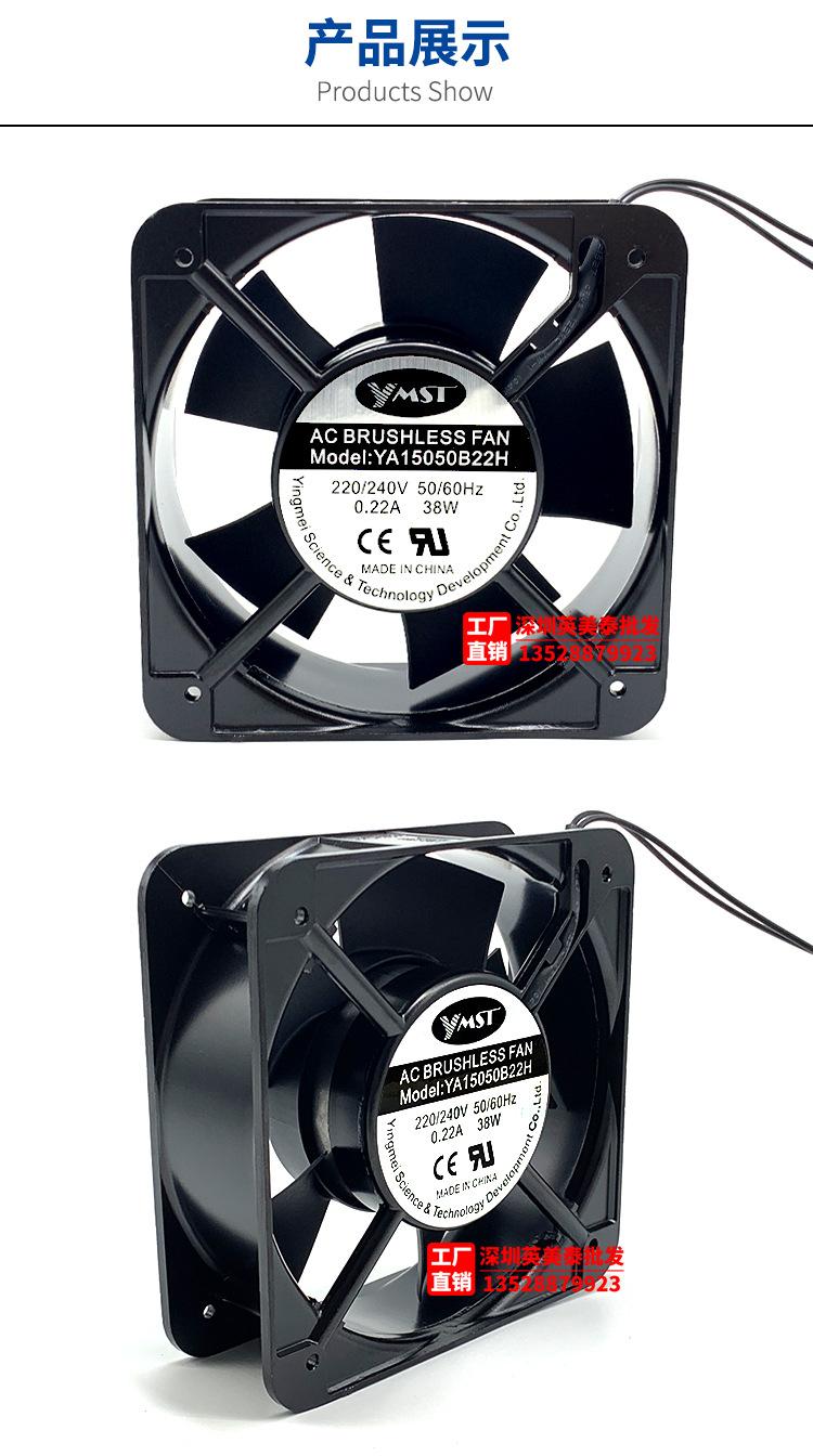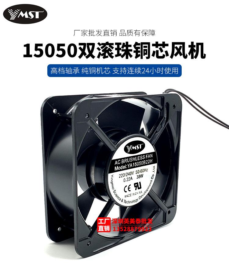 Ventilador de flujo axial para gabinete con chasis con cojinetes de bolas dobles y núcleo de cobre YMST 15050, 220 V, 15 cm