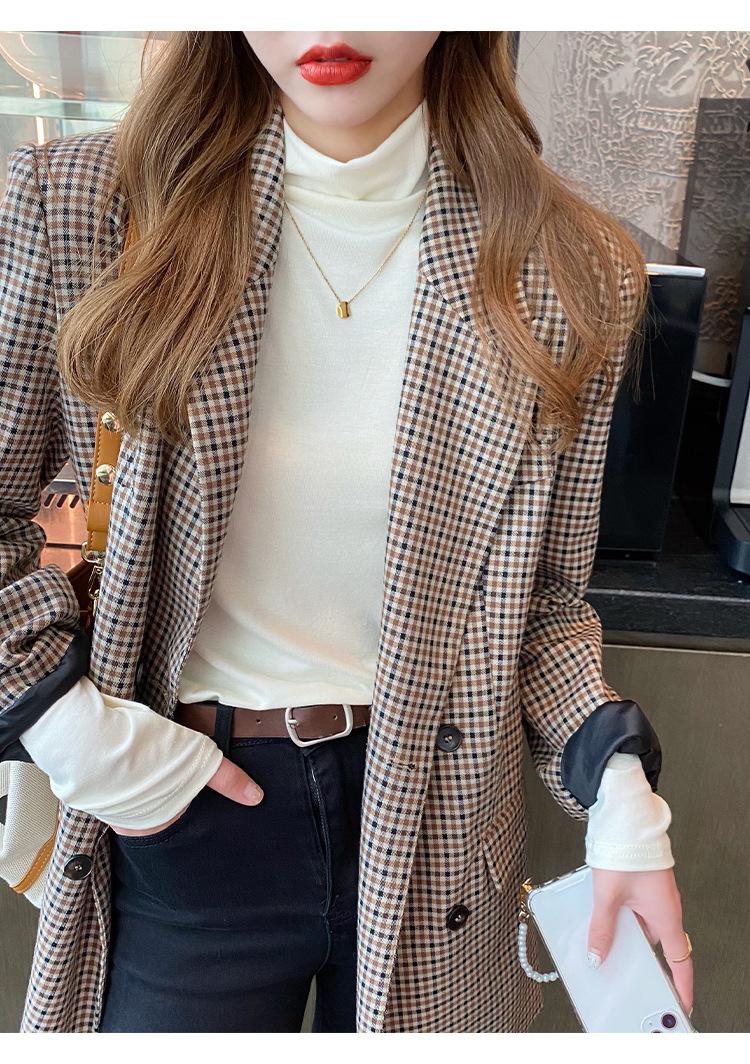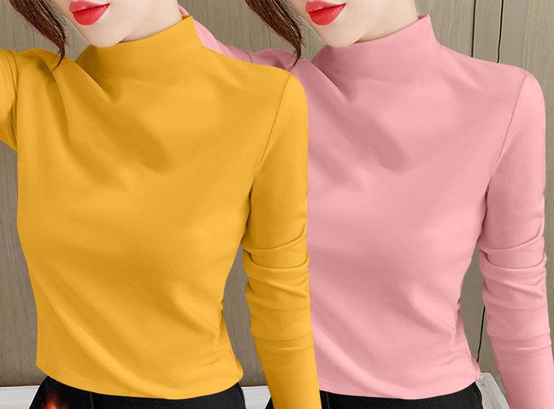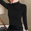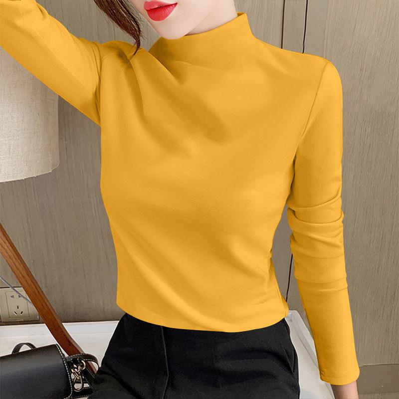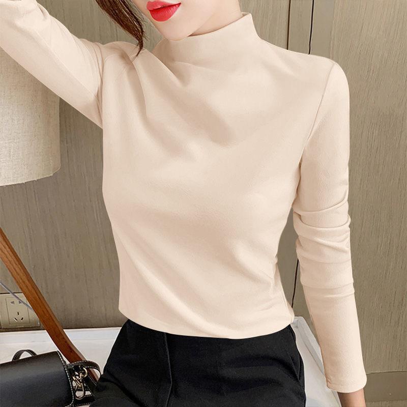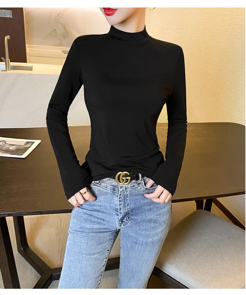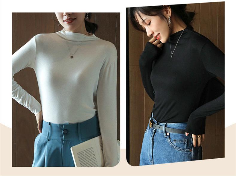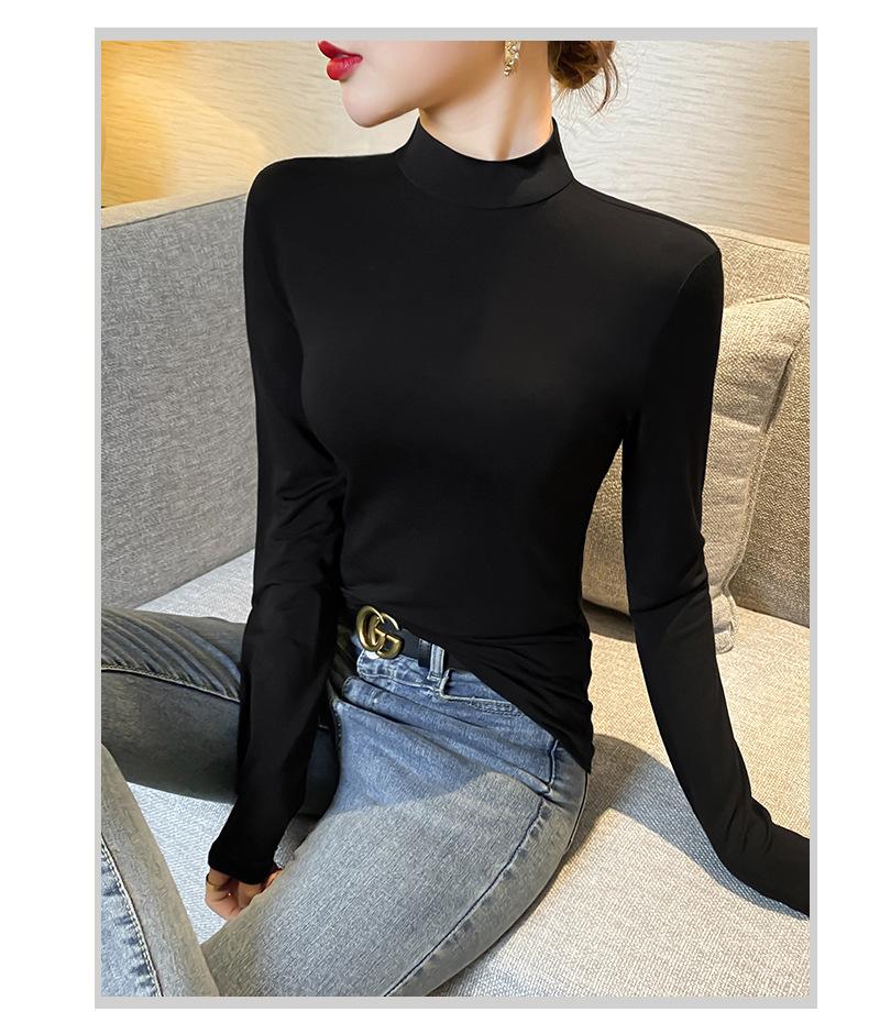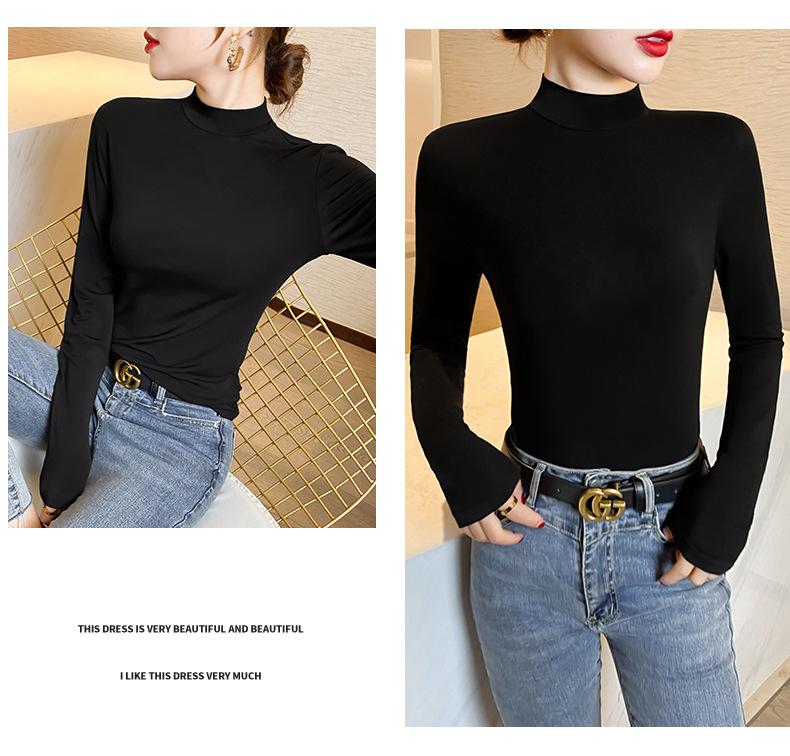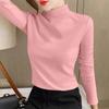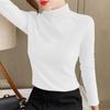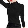 Camiseta de manga larga elástica de cuello semialto, cálida y gruesa de cachemira fina de doble cara para mujer, para otoño e invierno