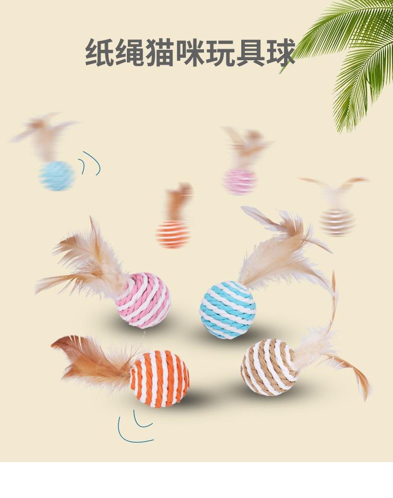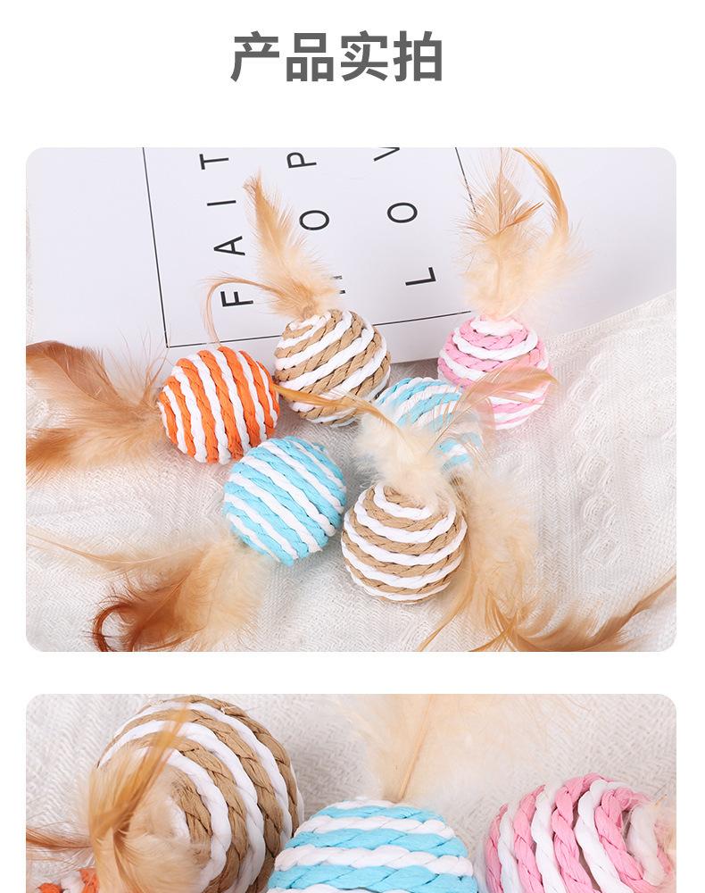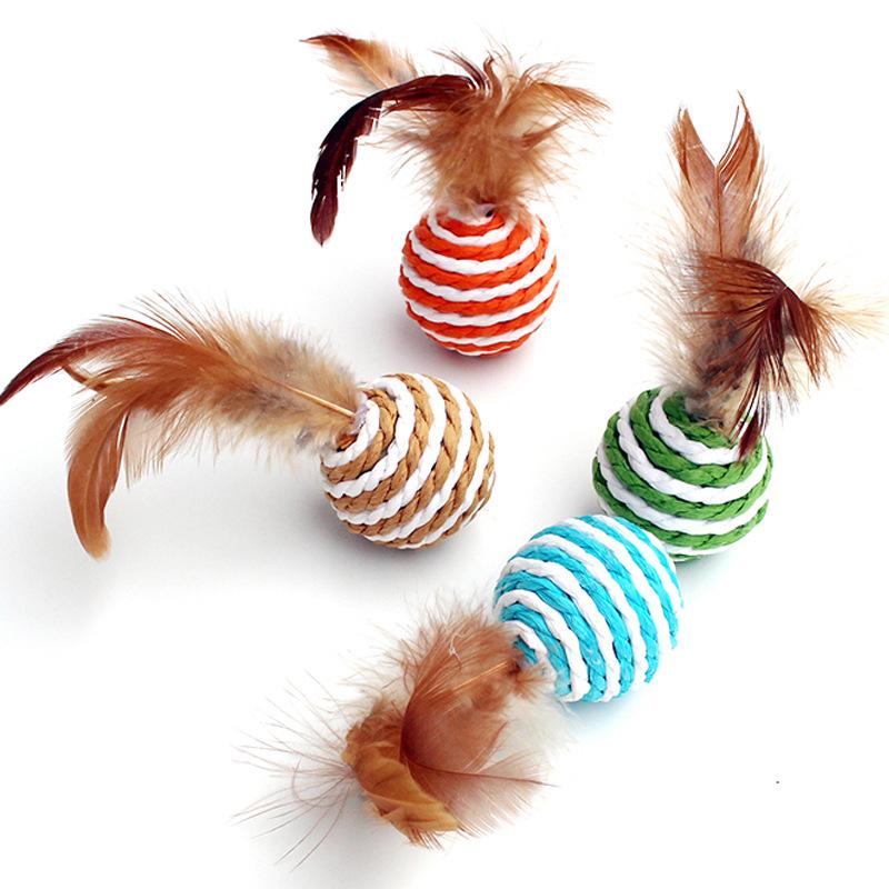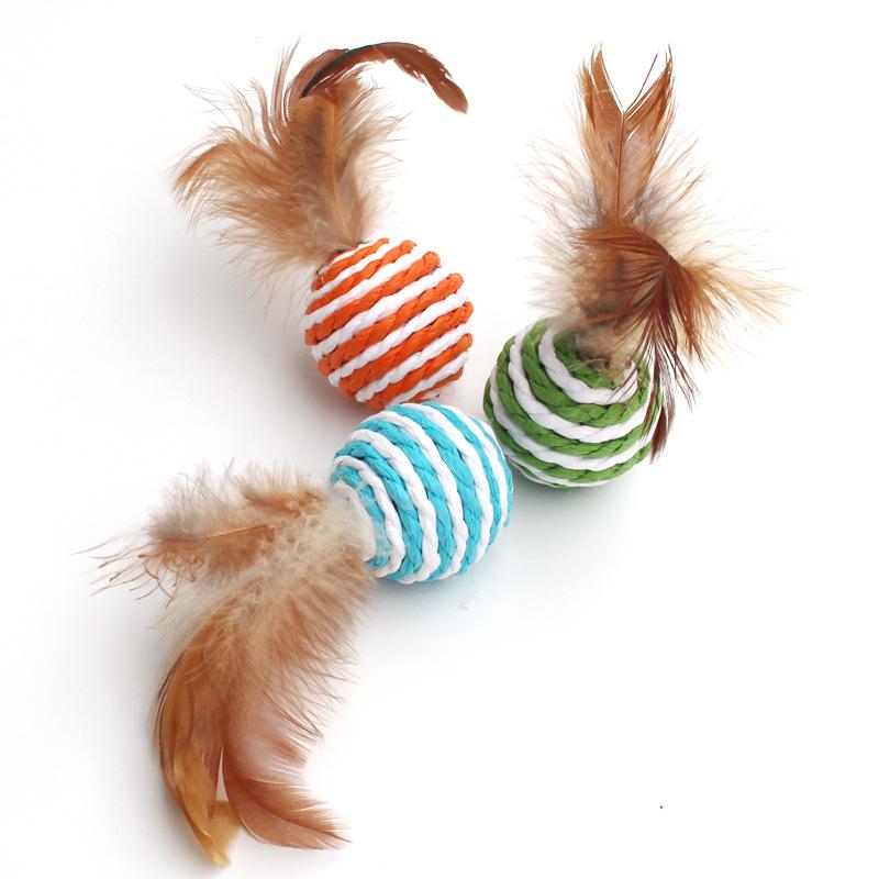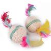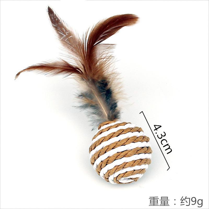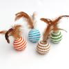 Juguete para gatos al por mayor, pelota de plumas de sisal, pelota de papel de cáñamo con sonido de pluma, pelota autoadhesiva para gatos, juguete resistente a los arañazos para gatos.