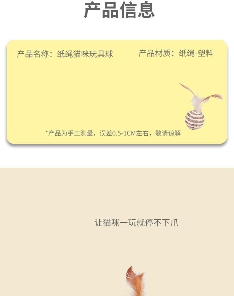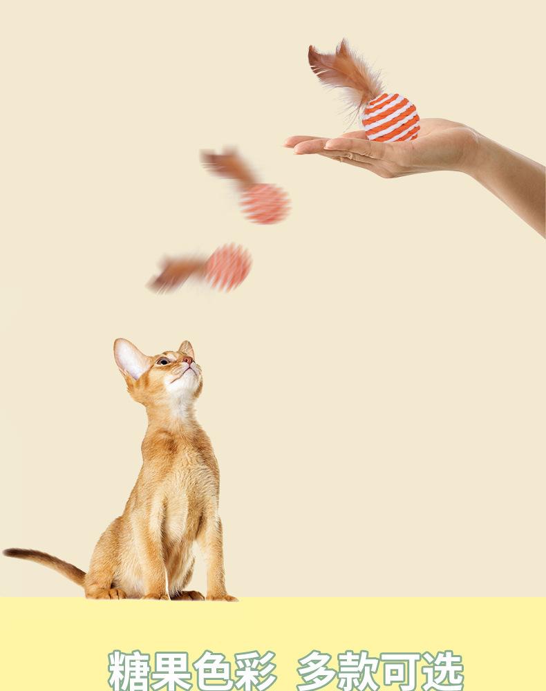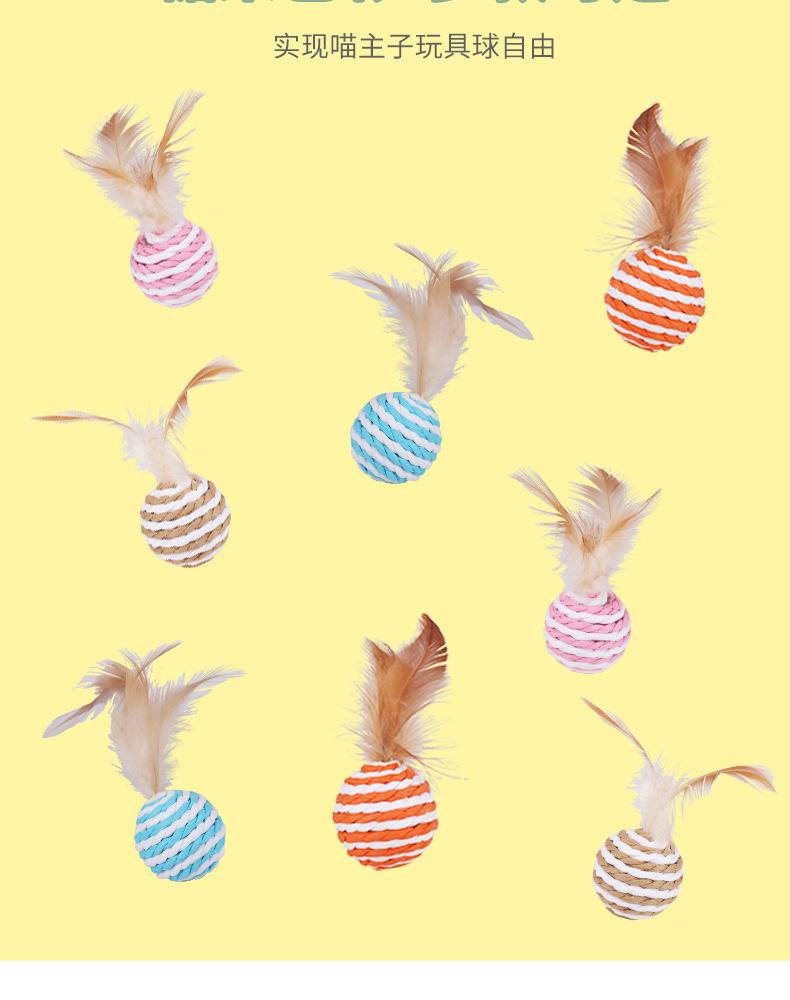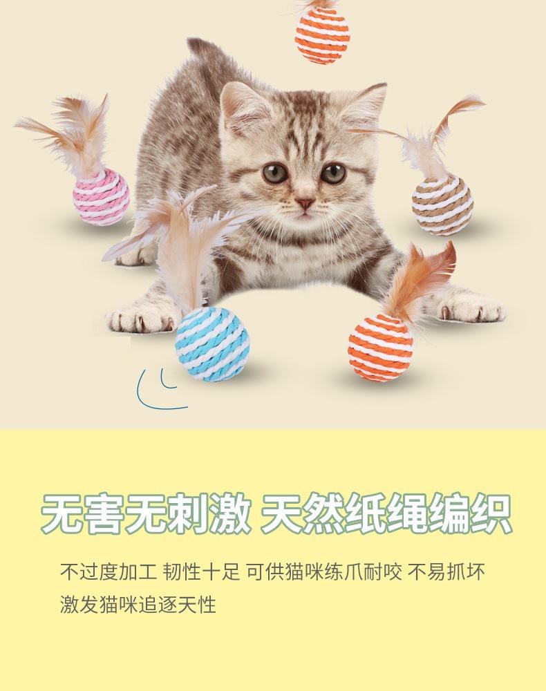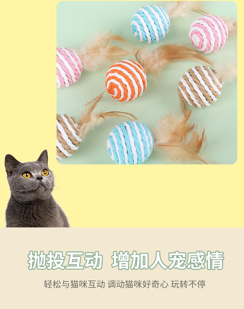 Juguete para gatos al por mayor, pelota de plumas de sisal, pelota de papel de cáñamo con sonido de pluma, pelota autoadhesiva para gatos, juguete resistente a los arañazos para gatos.