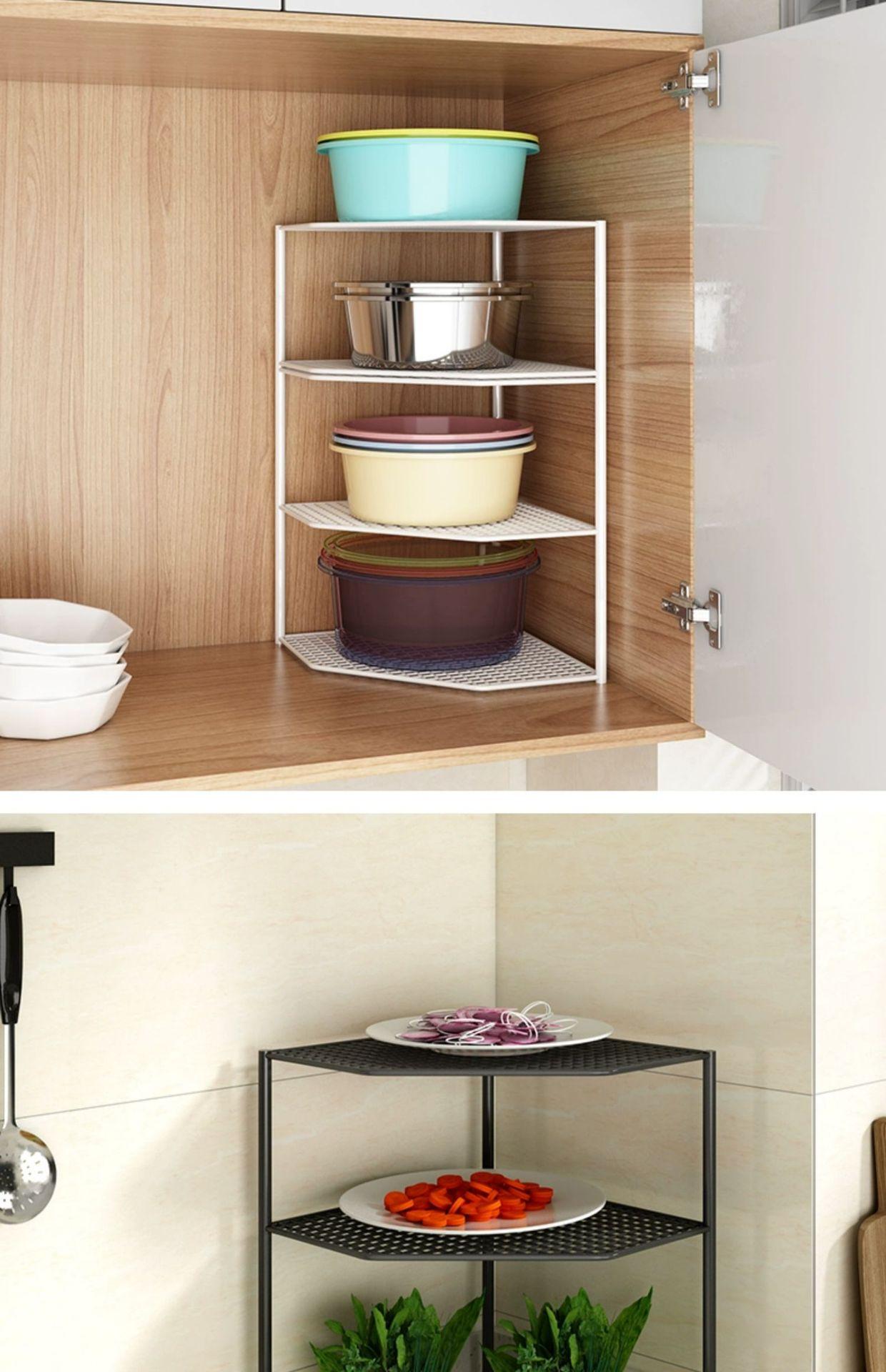 White double-layer corner stand-standard style, Black double-layer corner stand-standard style, Gold double-la...