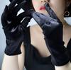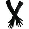 Guantes de terciopelo satinado negro, largos, para bolso, para vestido de noche, banquete, foto, joyería, estilo Hepburn, licra, para novia, vintage.