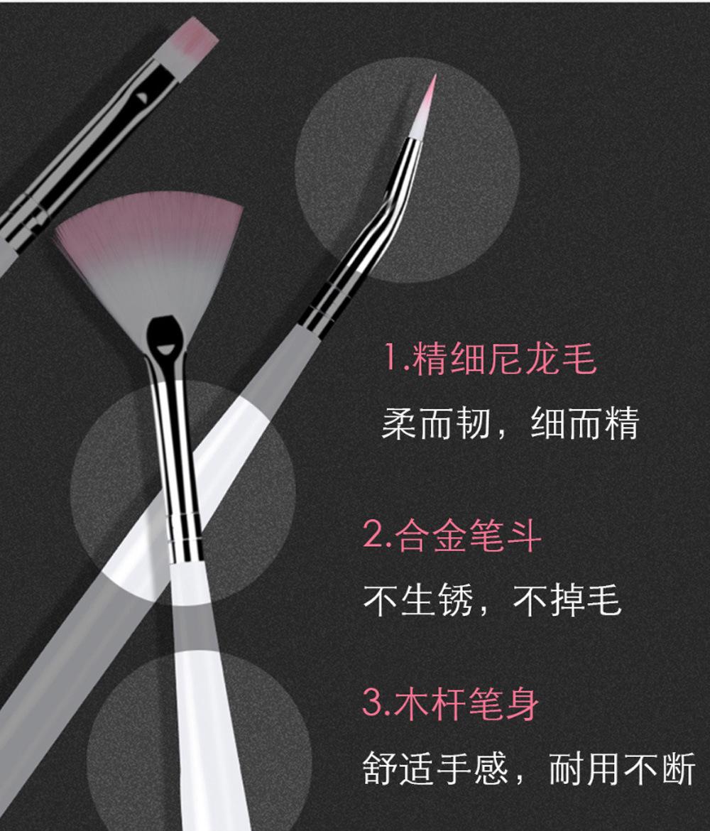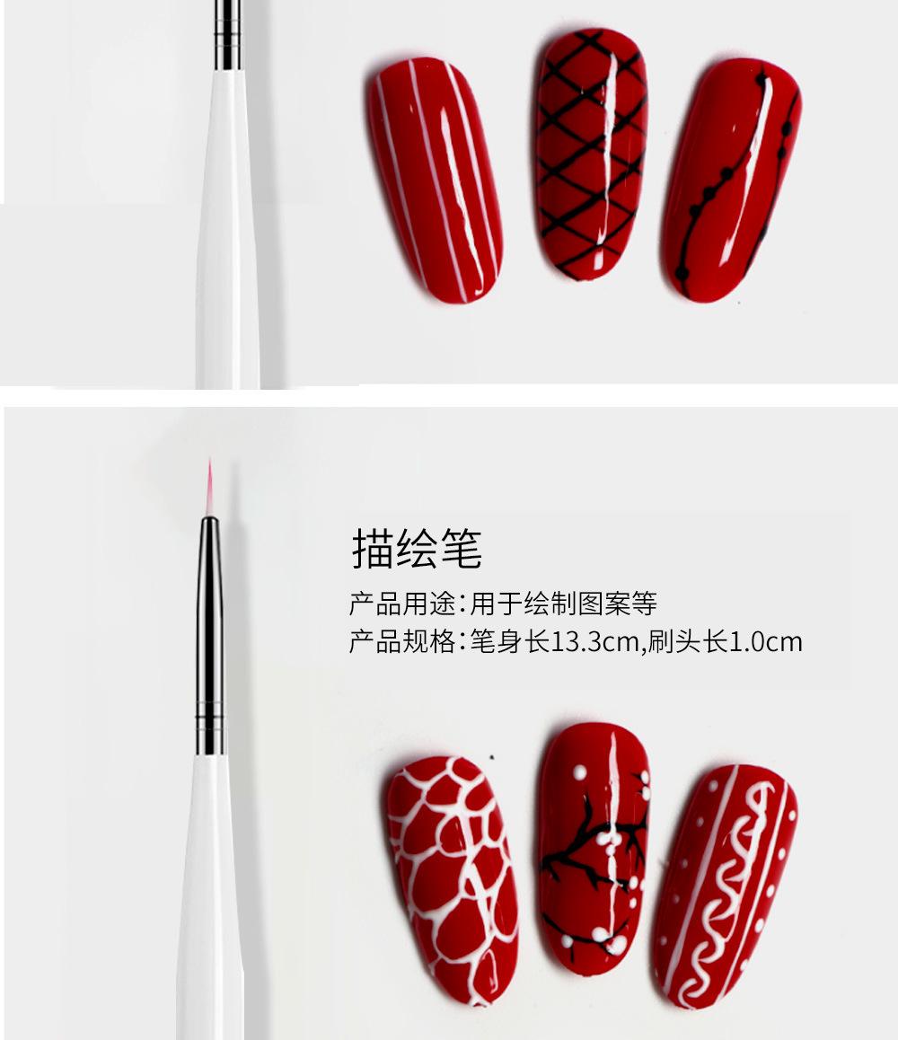 1. El juego de decoración de uñas se utiliza para dibujar líneas largas y suaves. 2. Fácil de operar: el bolígrafo es redondo, cómodo y fácil de operar. Vida útil: 36 meses