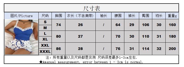 Conjunto Europeo y Americano Transfronterizo de Ropa para el Hogar de Encaje con Tirantes y Shorts Cómodo Elástico para el Hogar Casual Usable Pijama para Mujer