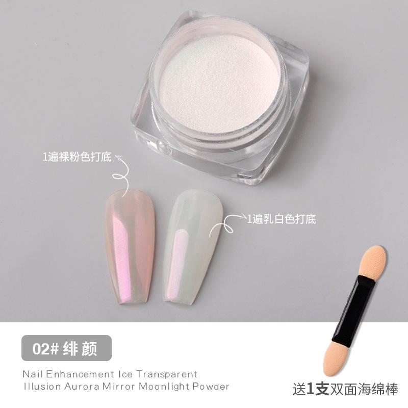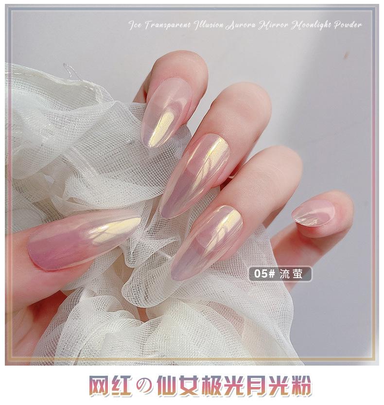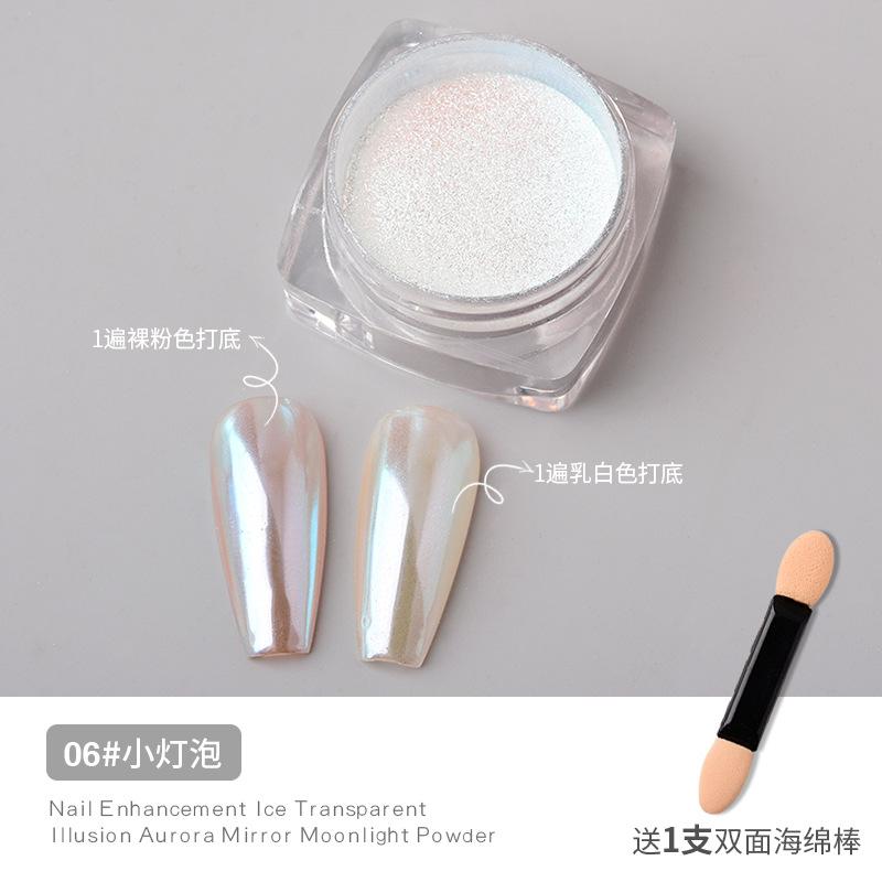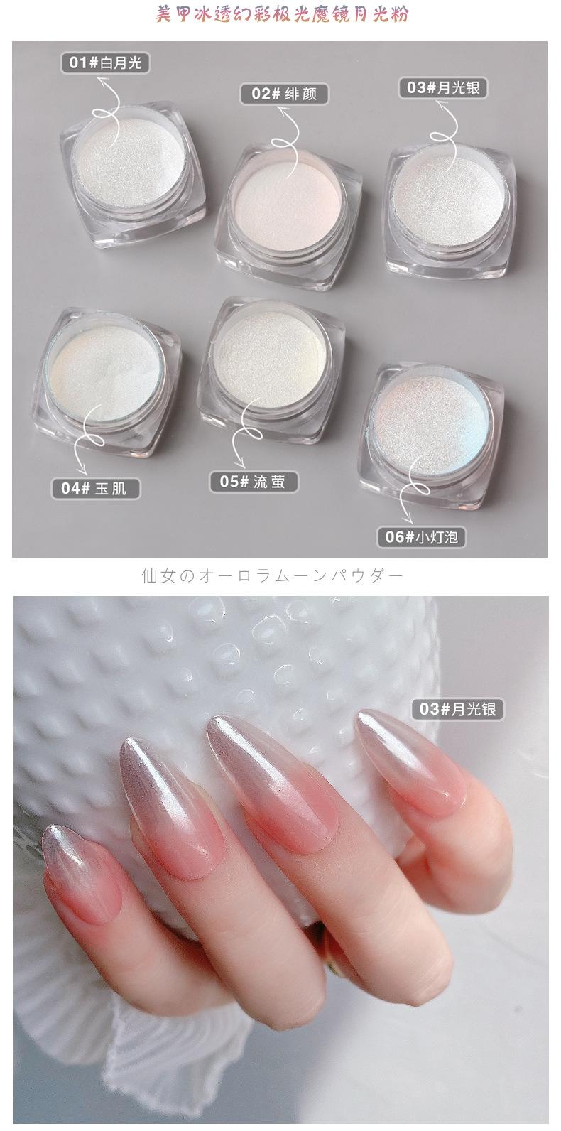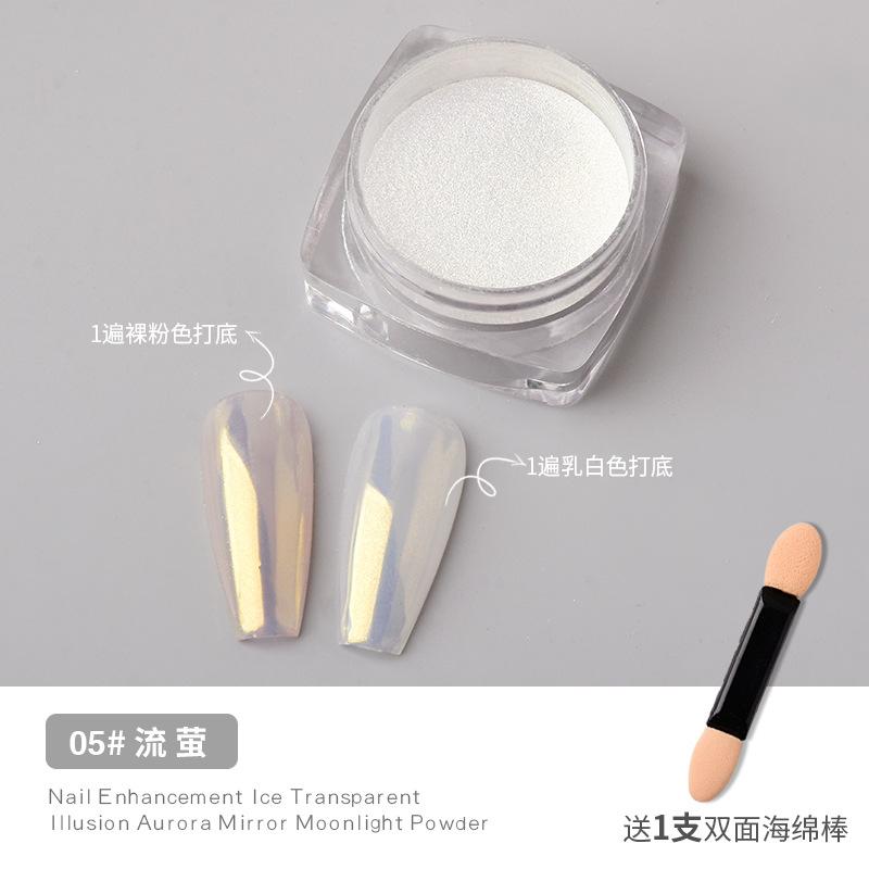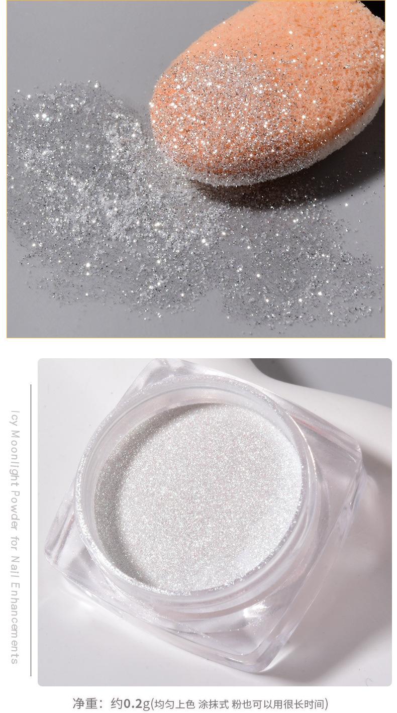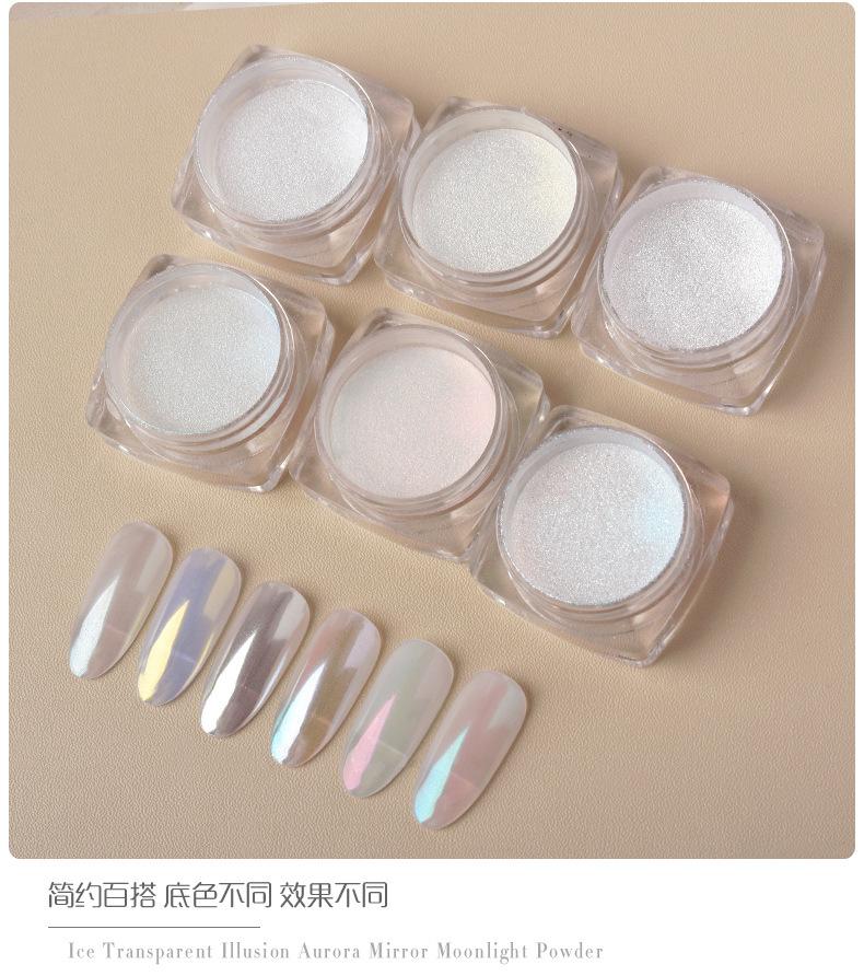 Nuevo polvo de luz de luna con bombilla pequeña para decoración de uñas, polvo de espejo mágico, polvo de brillo de uñas de hadas galvanizado con aurora de hielo, polvo de jade para resaltar y muscular
