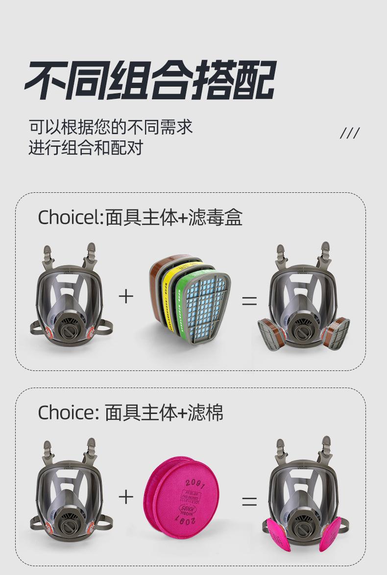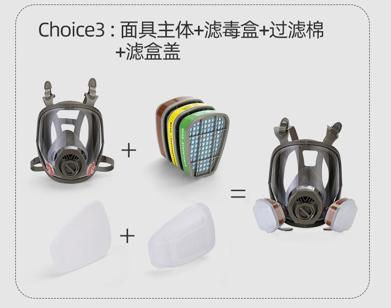 6800 full face mask (not anti-fog), 6800 three interfaces + no. 3 tank, 6800 full face mask + no. 3 seven-piec...