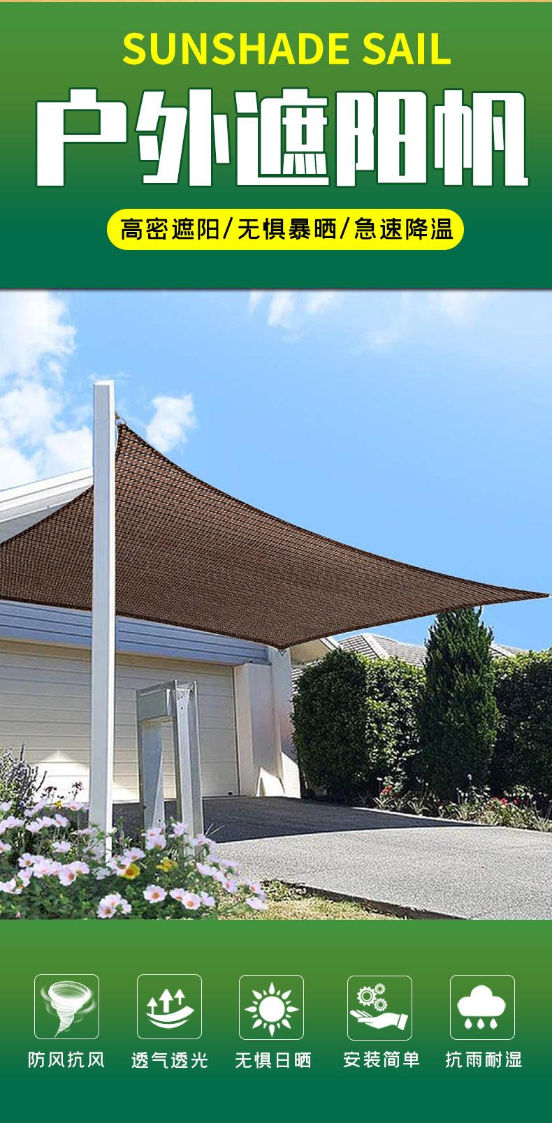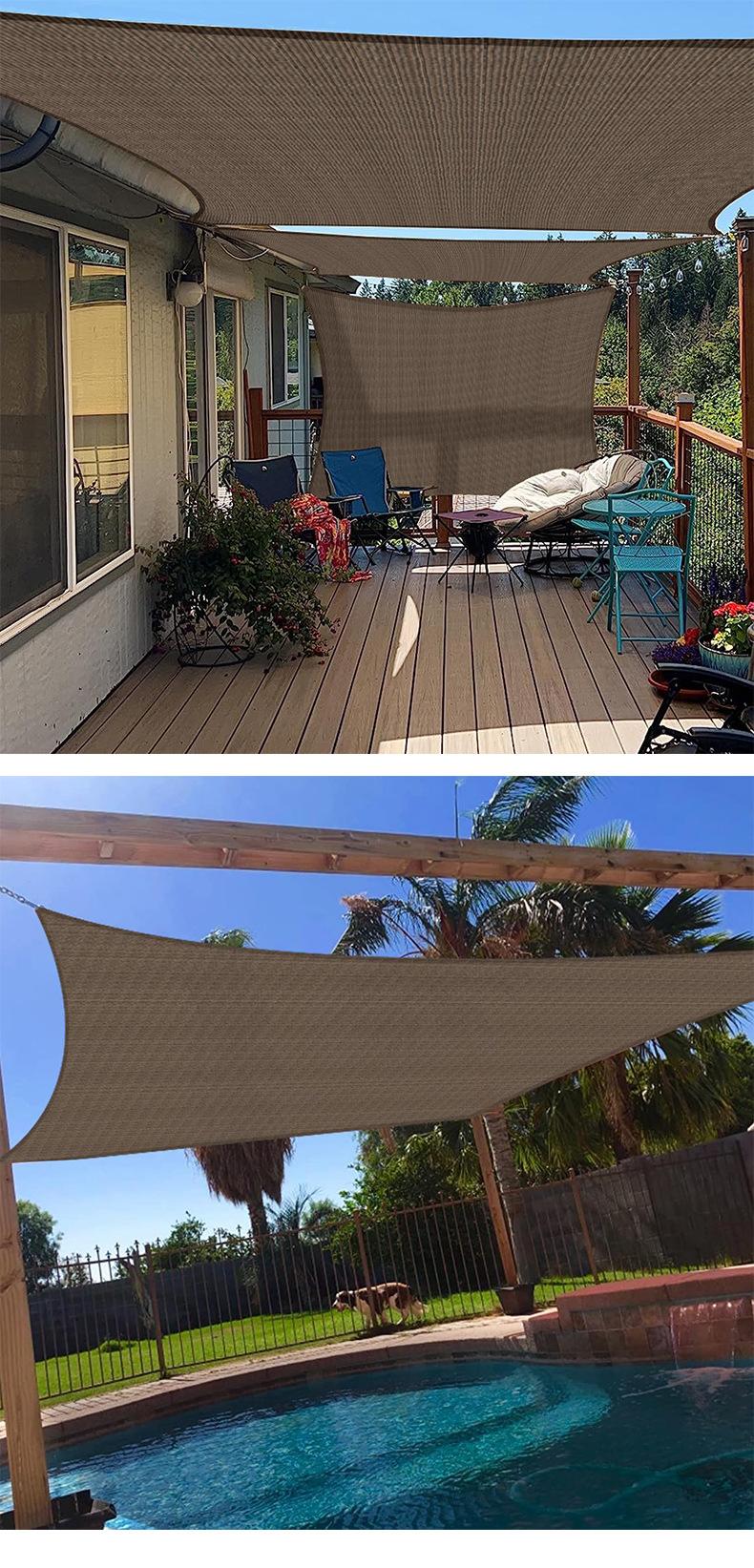 Vela de Sombra Marrón con Múltiples Especificaciones de Sombra, Triangular y Cuadrada, Red de Sombra de Material HDPE para Piscina y Cenador de Jardín