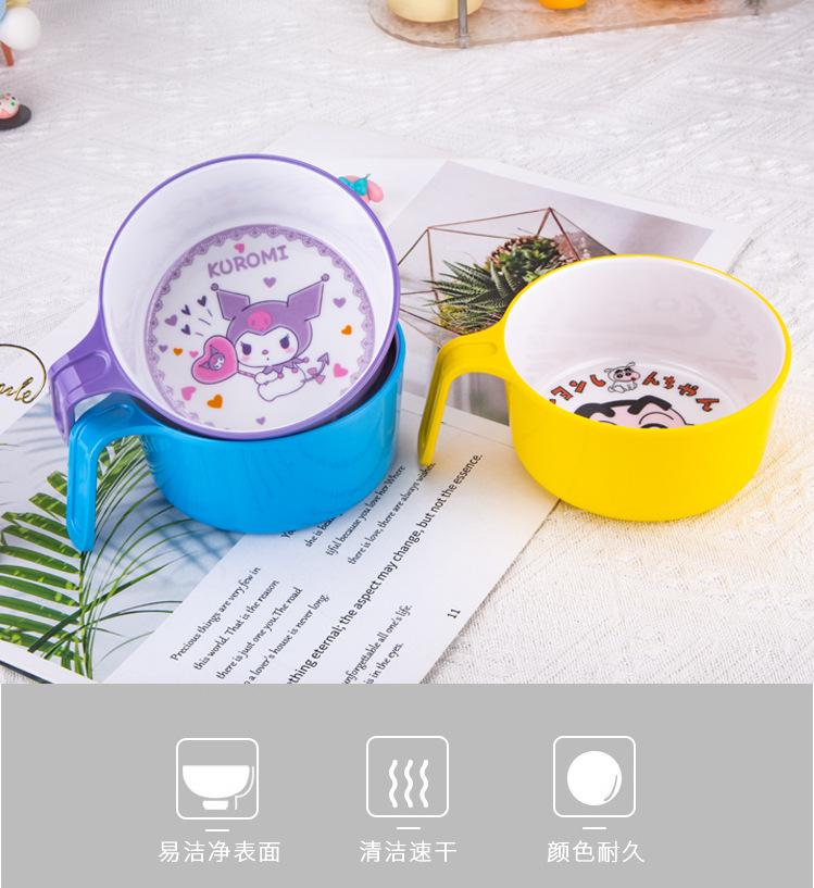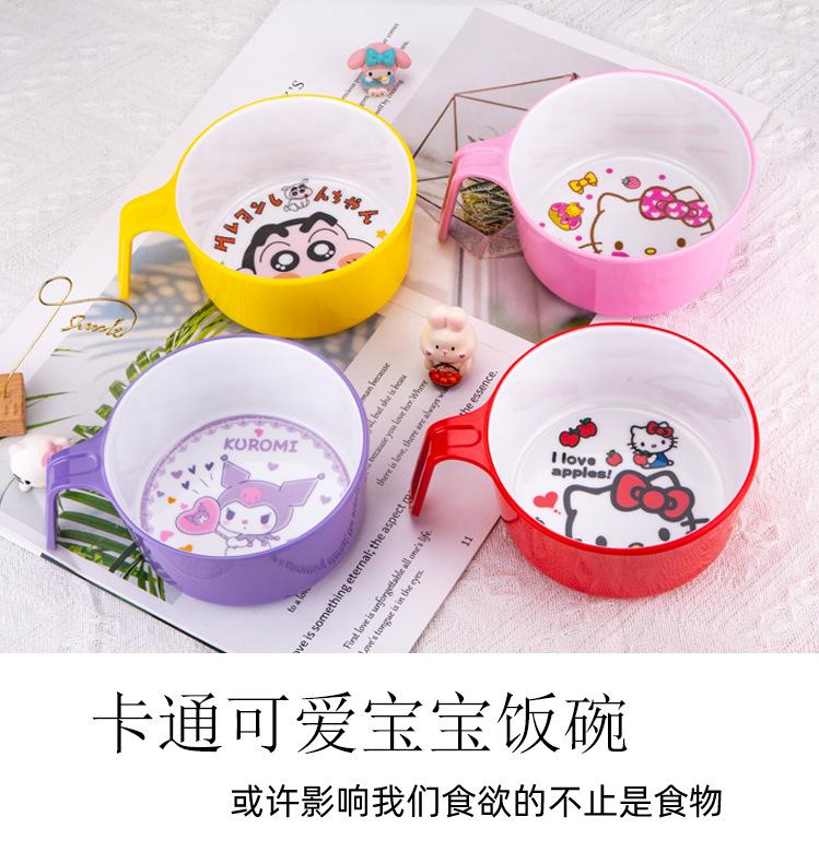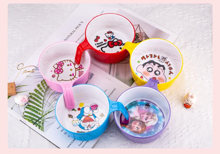 Melamina de dibujos animados con asa tazón para bebé jardín de niños niños comiendo venta al por mayor tazón para fideos para bebé tazón para suplemento alimenticio para niños arroz
