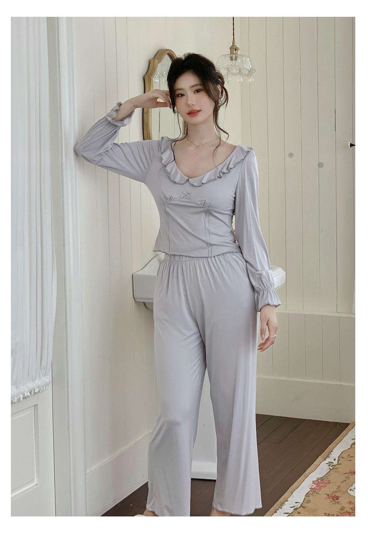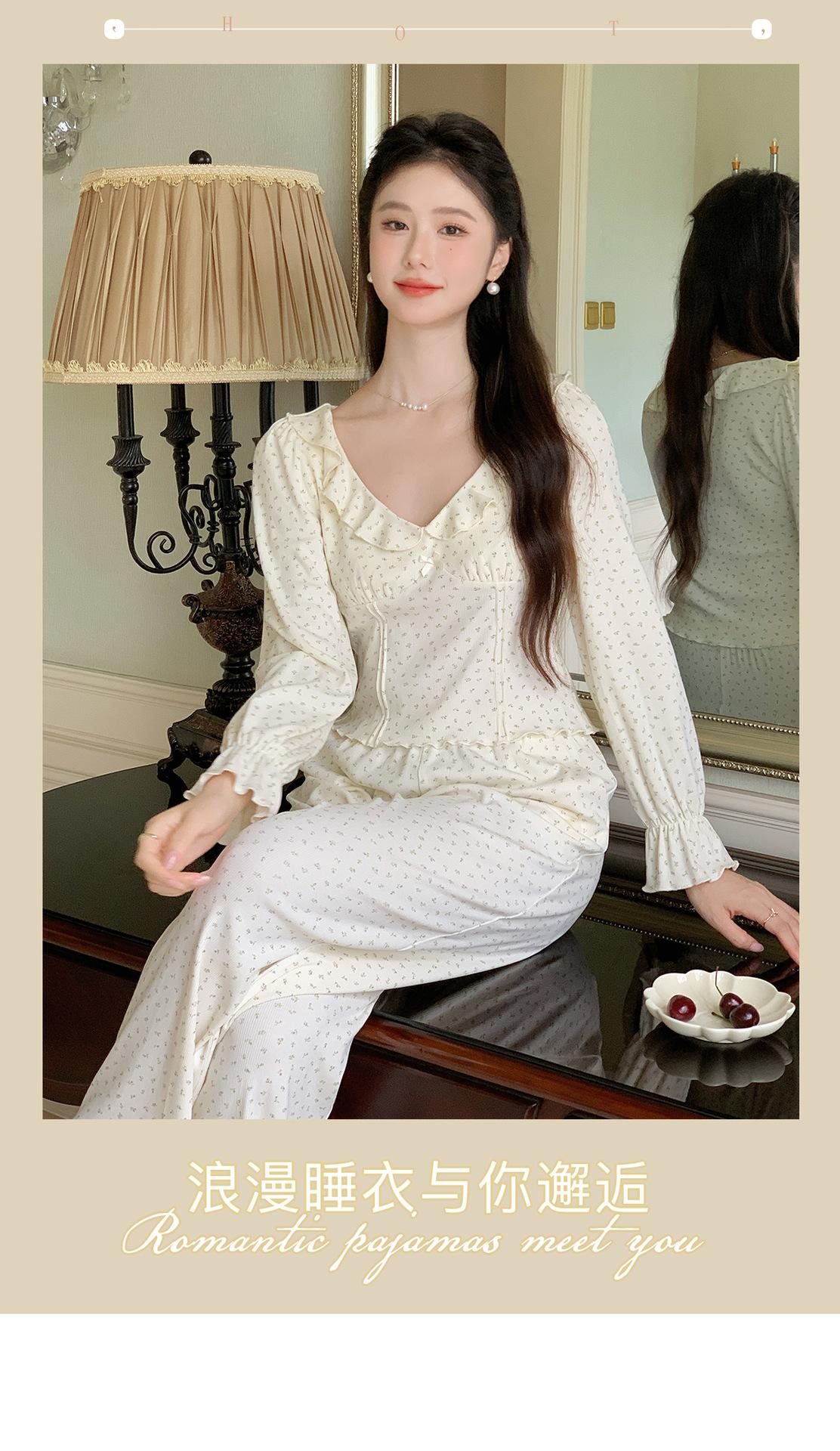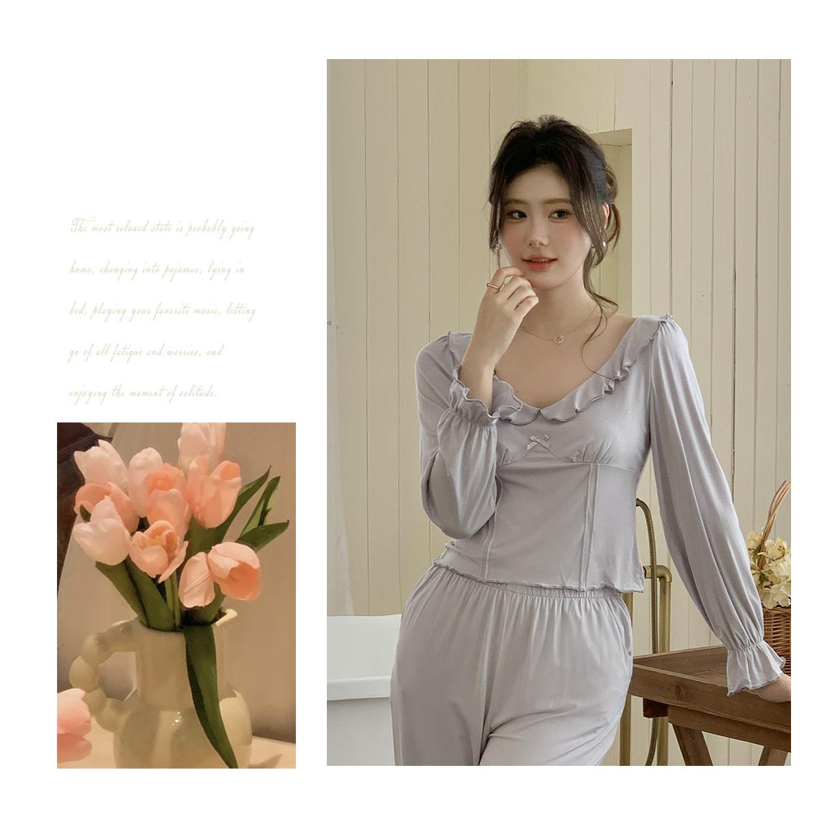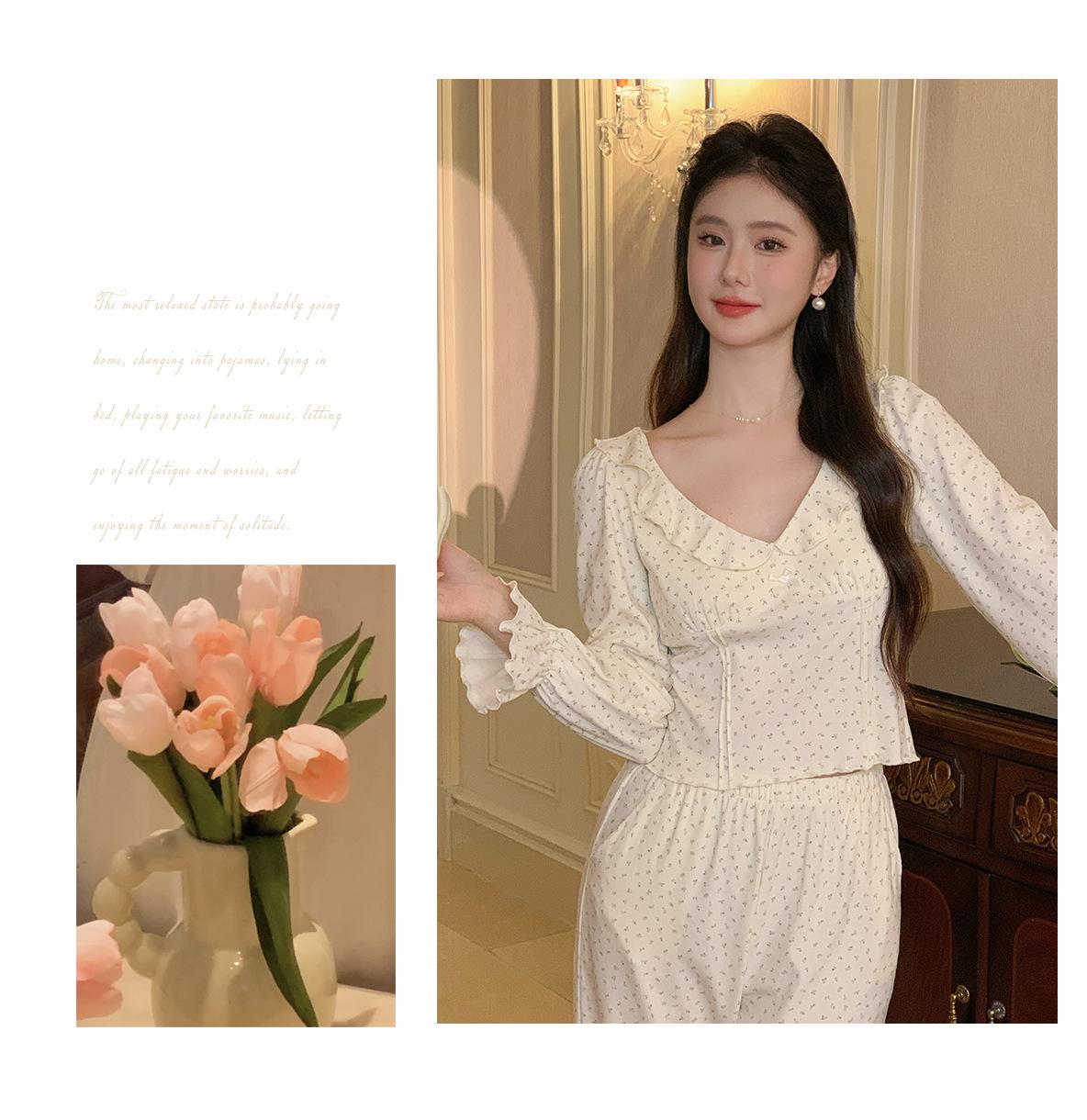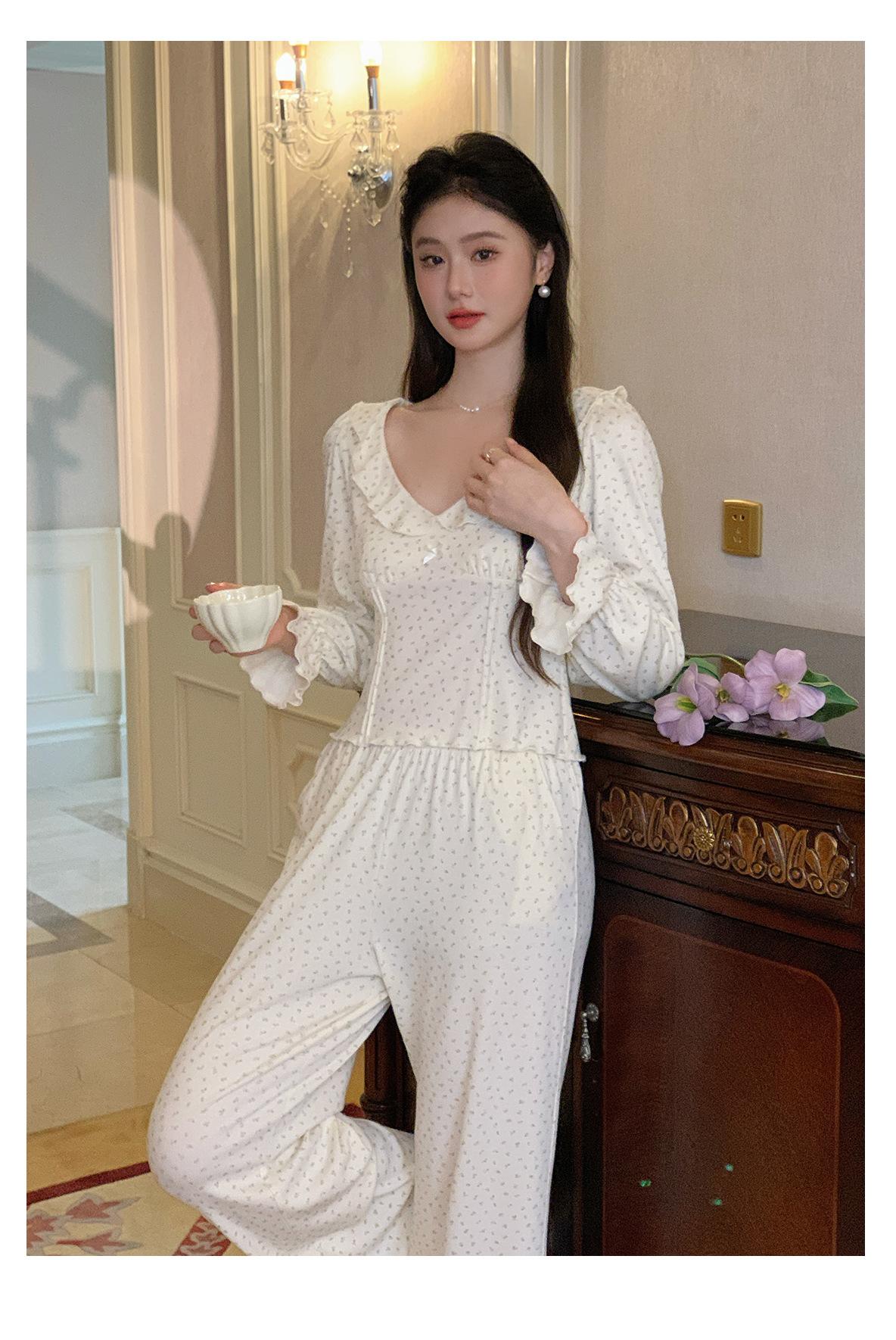 Pijama de estilo francés para mujer, pantalones de manga larga, traje de algodón estilo princesa dulce, pijama de otoño, ropa para el hogar