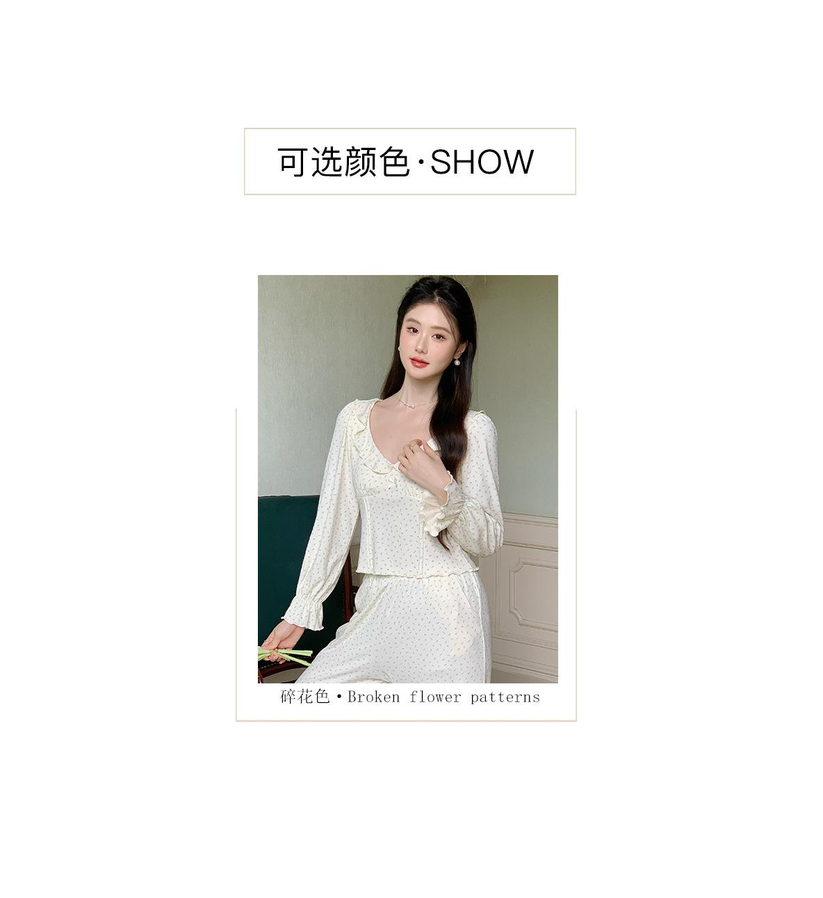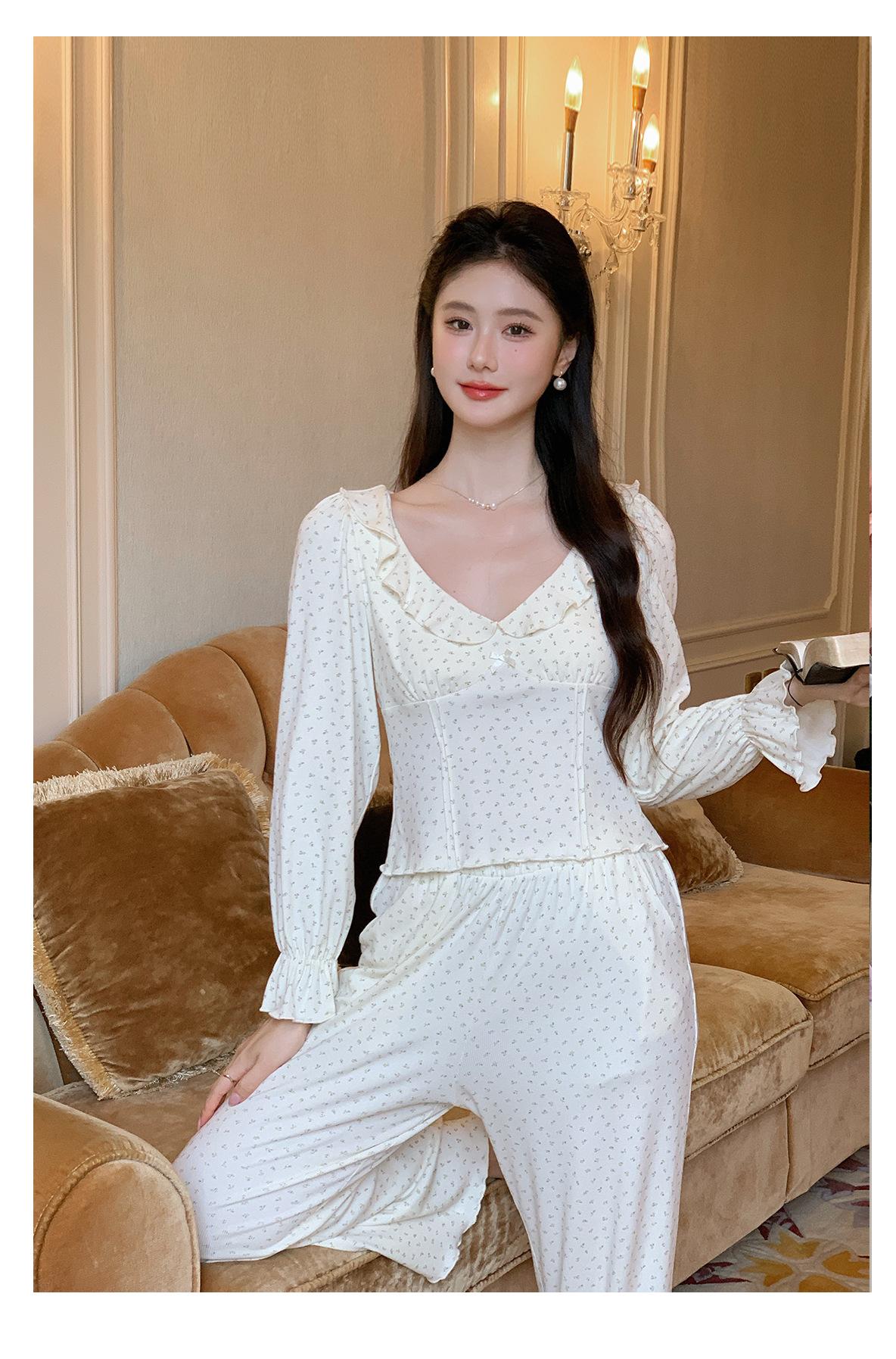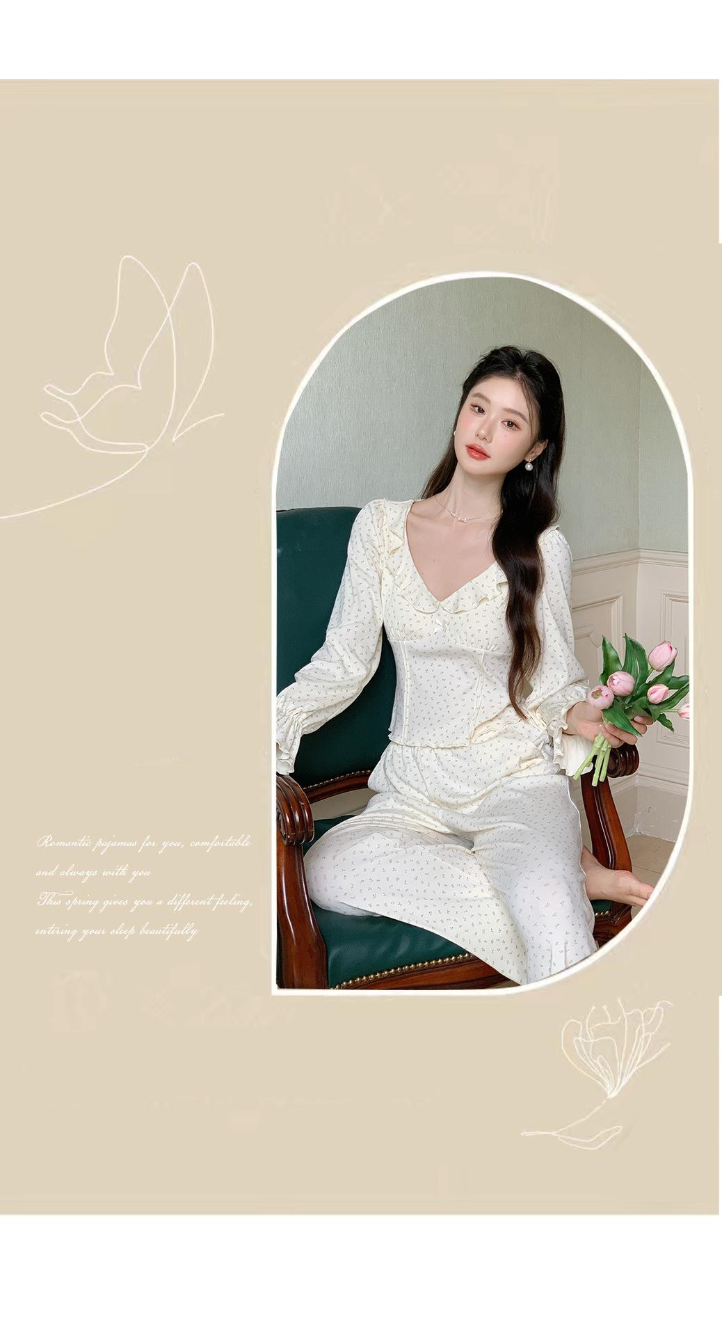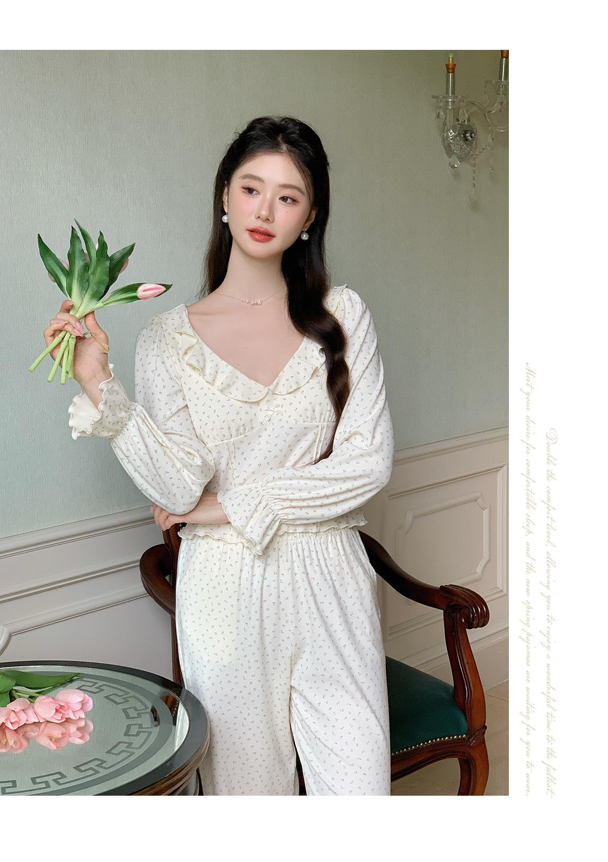 Pijama de estilo francés para mujer, pantalones de manga larga, traje de algodón estilo princesa dulce, pijama de otoño, ropa para el hogar