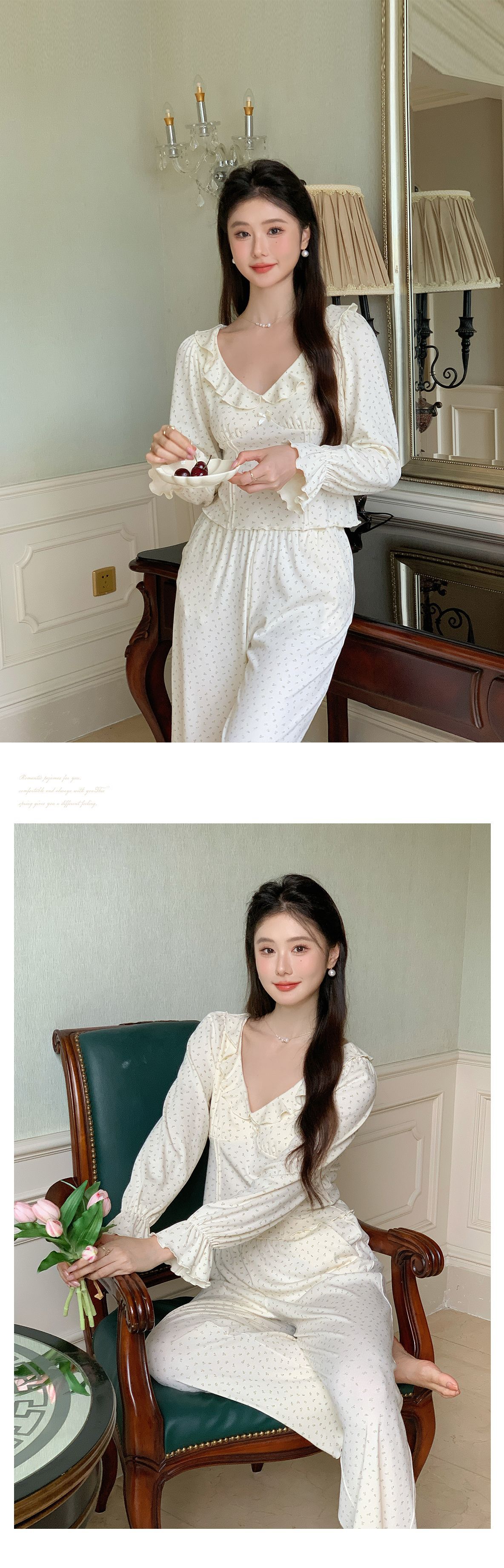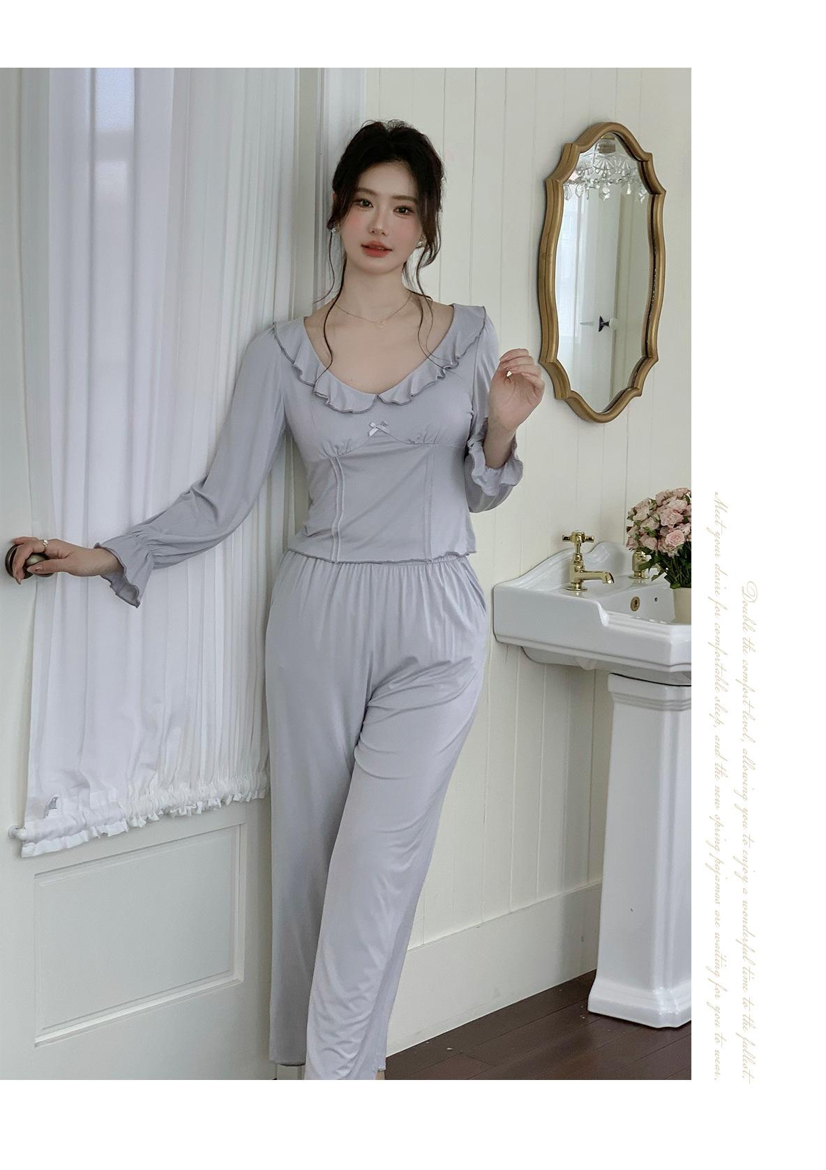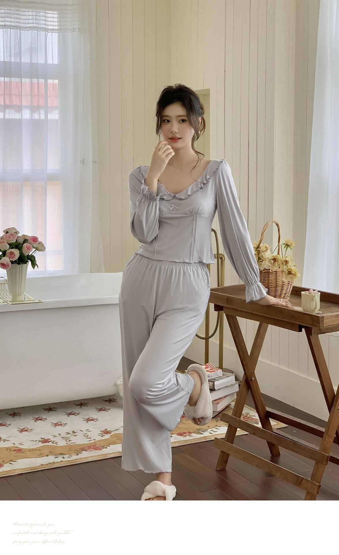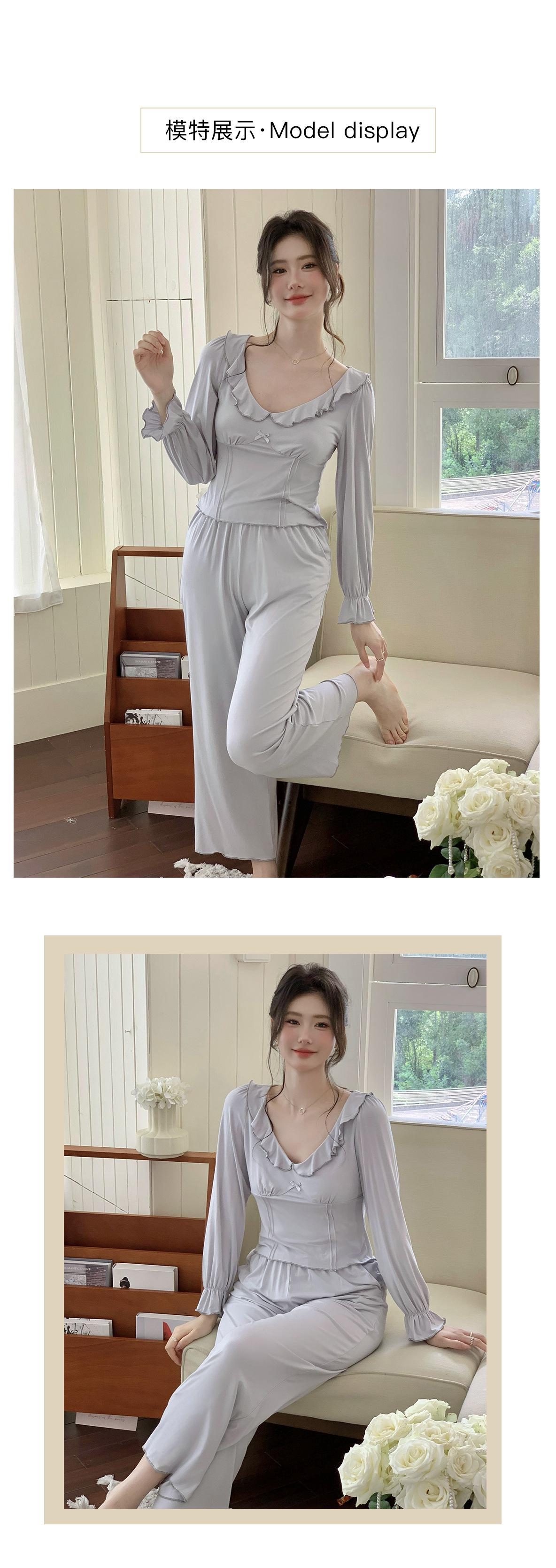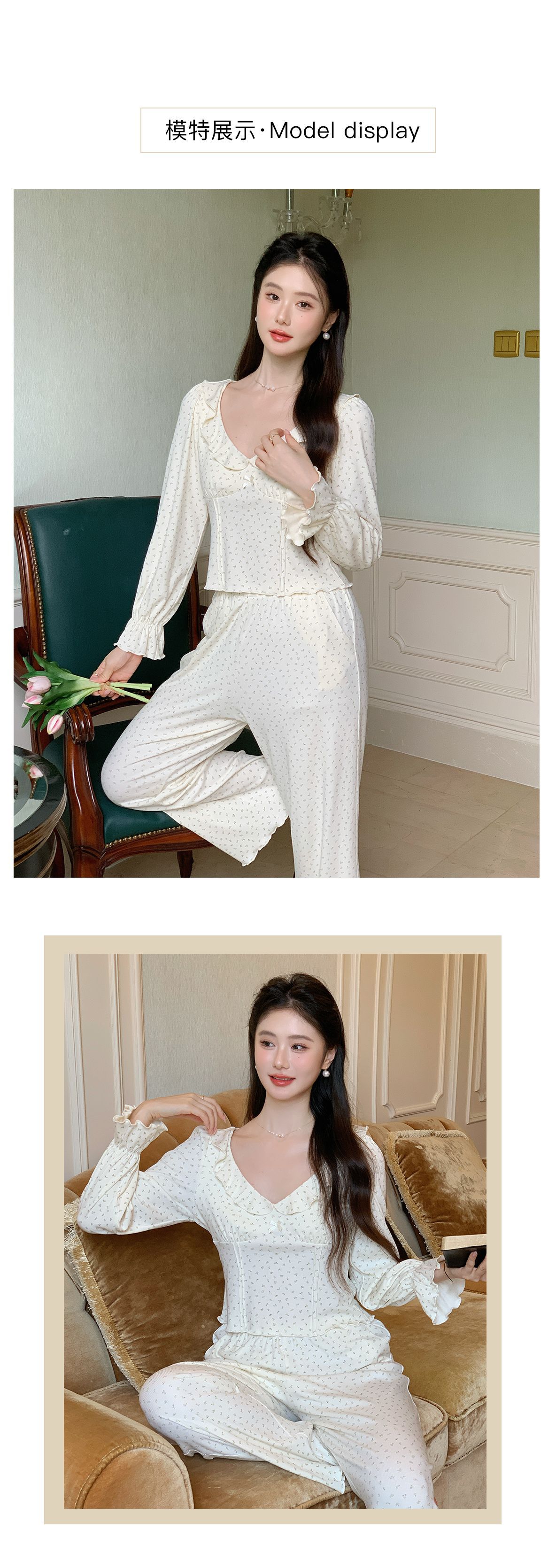 Pijama de estilo francés para mujer, pantalones de manga larga, traje de algodón estilo princesa dulce, pijama de otoño, ropa para el hogar