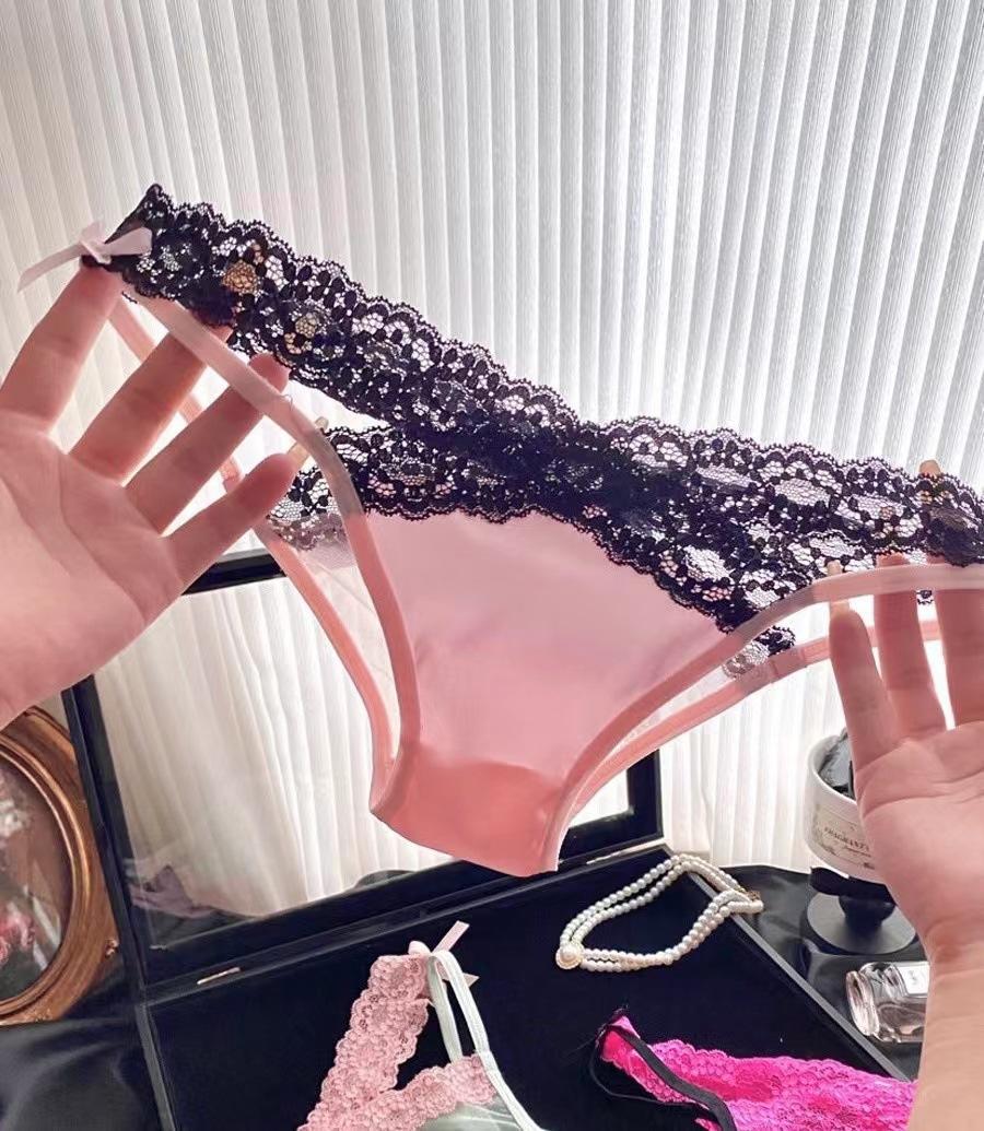 Calientes y picantes~Bragas japonesas sexys de encaje a contraste de color dopamina para mujer, moda encaje transpirables sin costuras