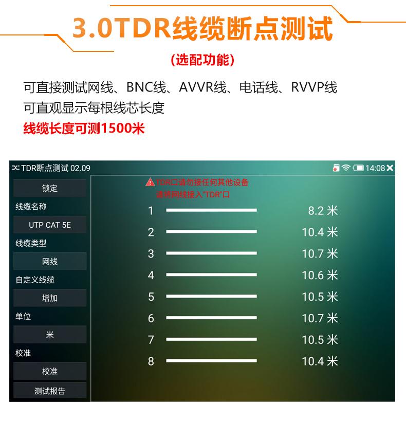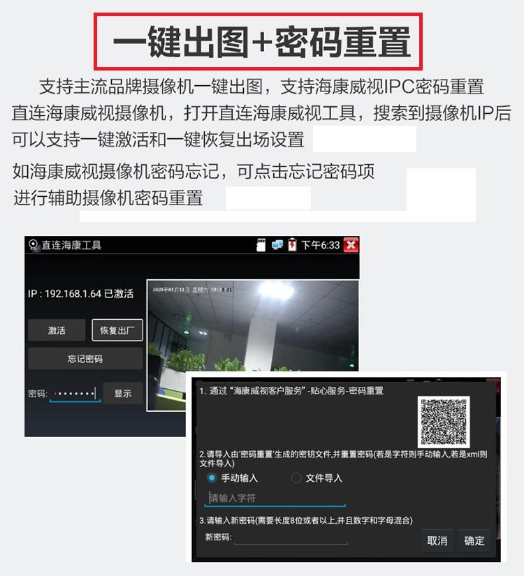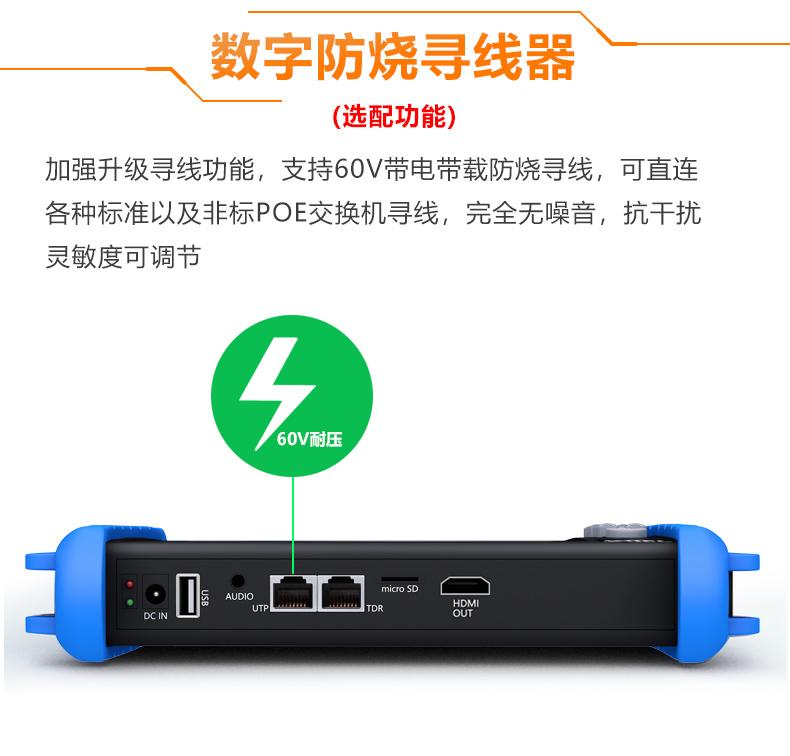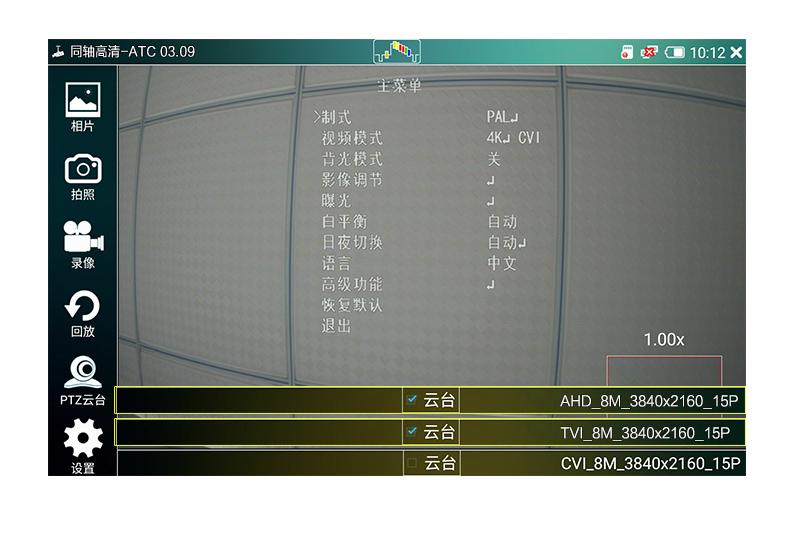 ● Soporta pruebas de imagen de cámara coaxial HD 4.0, TVI8MP, CVI8MP, AHD8MP, control visual coaxial y llamada de menú, soporta toma de fotos, grabación de video, acercamiento y reproducción; (IPCXS-ACHT)