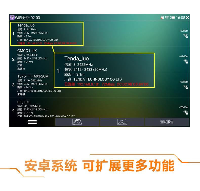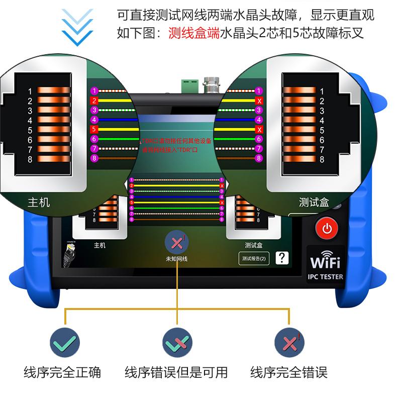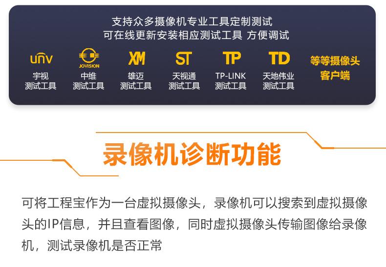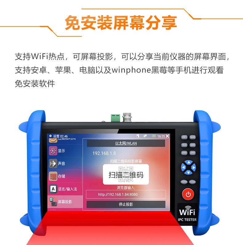 ● Función WIFI inalámbrica incorporada, puede probar cámaras de red inalámbricas y admite la creación de puntos de acceso WIFI;
