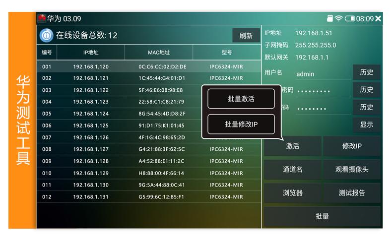 ● La nueva herramienta de prueba de Dahua admite la activación por lotes de cámaras Dahua, la modificación por lotes de direcciones IP, números de teléfono móvil reservados para la recuperación de contraseñas y la adición de modificación personalizada de nombres de canal, que puede modificar nombres de usuario, contraseñas y otros parámetros;