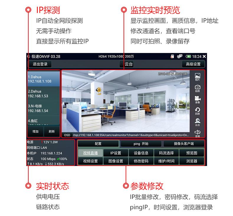 ● Detección de segmento de red IP completa, salida de imagen con un clic de cámara de red ONVIF extremadamente rápida;