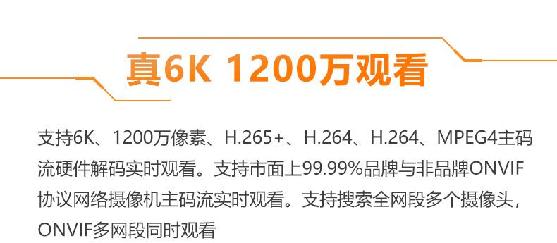 ● Soporta webcams H265/H264/MPEG4, decodificación por hardware, soporta flujo principal hasta webcams de 6K 1200 píxeles, imágenes claras y fluidas;