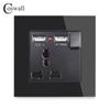 Panel Negro de Vidrio Templado Europeo Hogar Hotel Interruptor Enchufe Exportación Gama Completa Interruptor con Luz Led