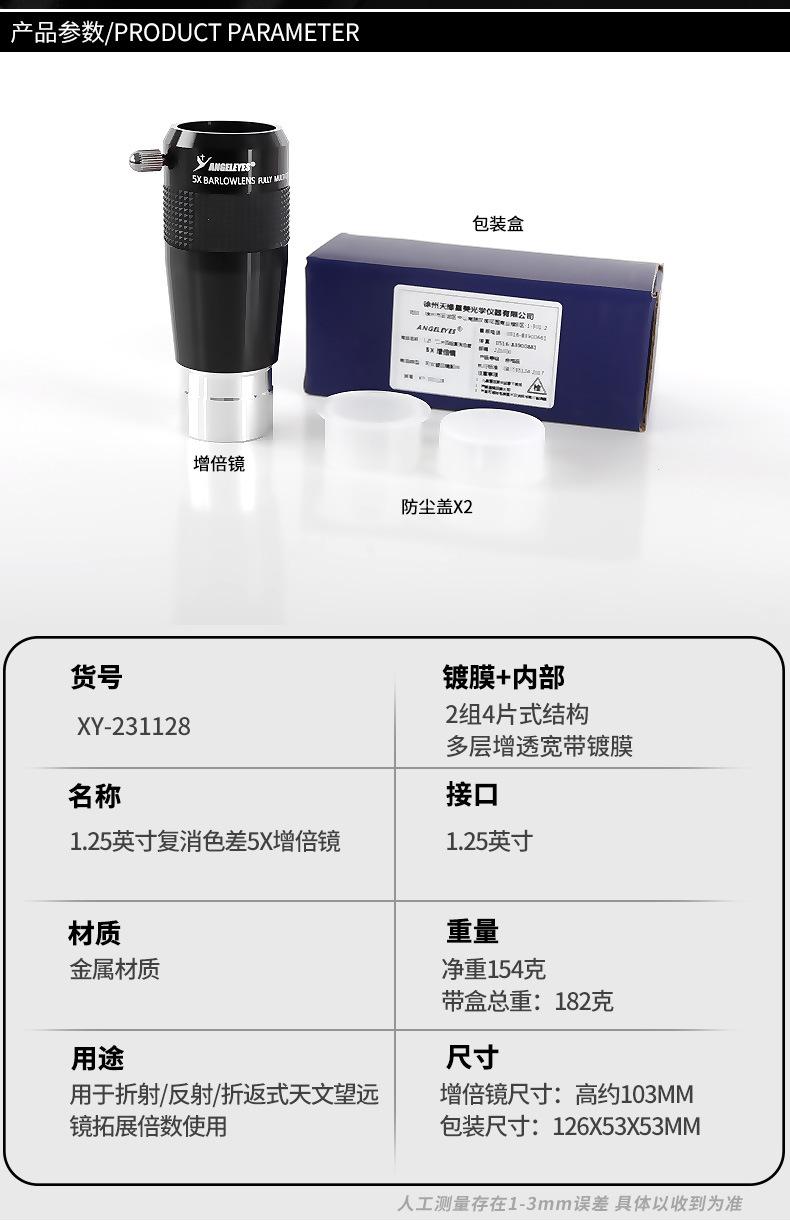Lente acromática Xingyuan de 1.25 pulgadas 5x metal de alta potencia HD accesorios profesionales para telescopio astronómico