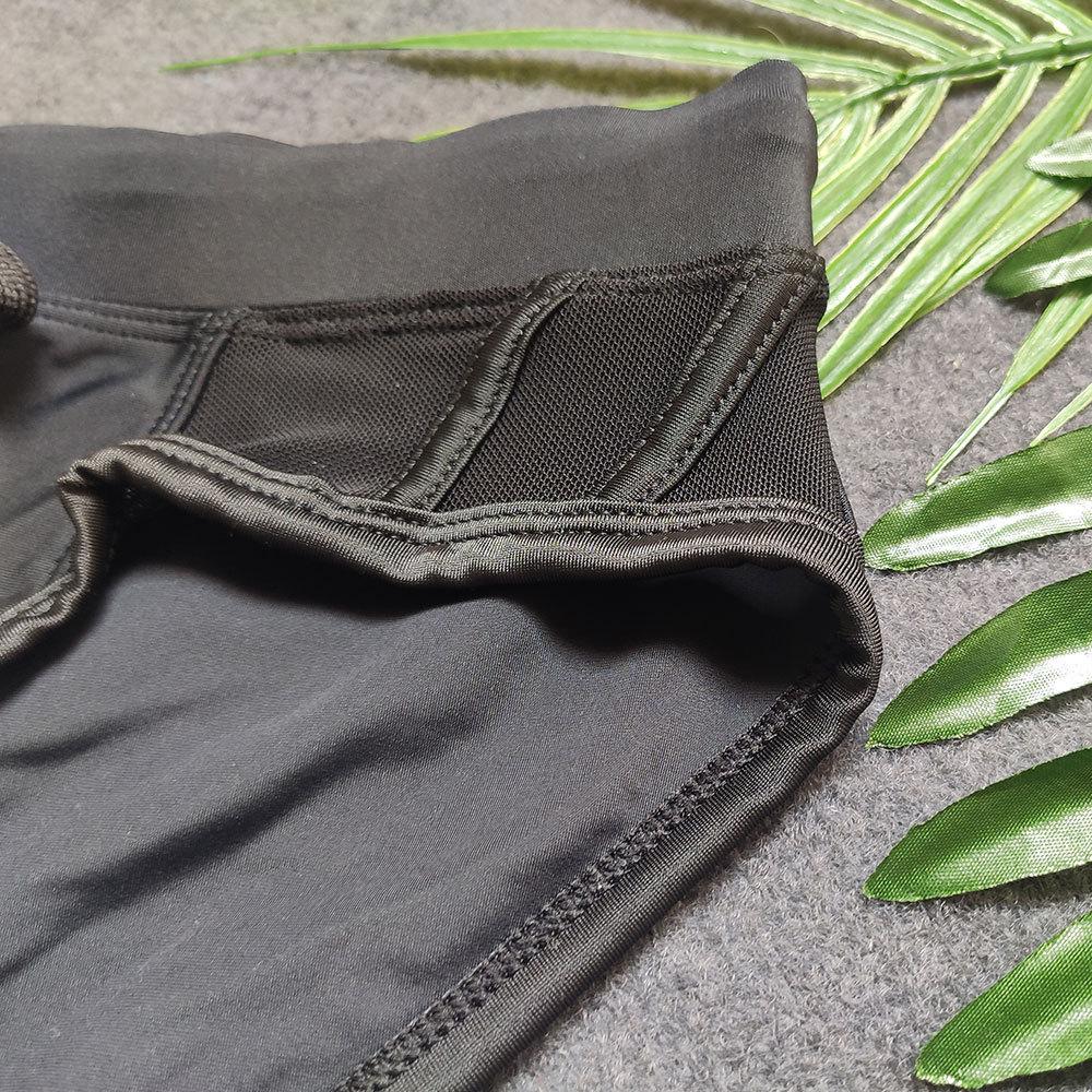 Bikini triangular negro sexy UXH con costuras laterales de malla, bañador triangular, pantalones cortos de carreras transfronterizos europeos y americanos