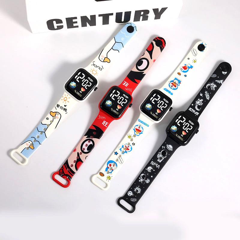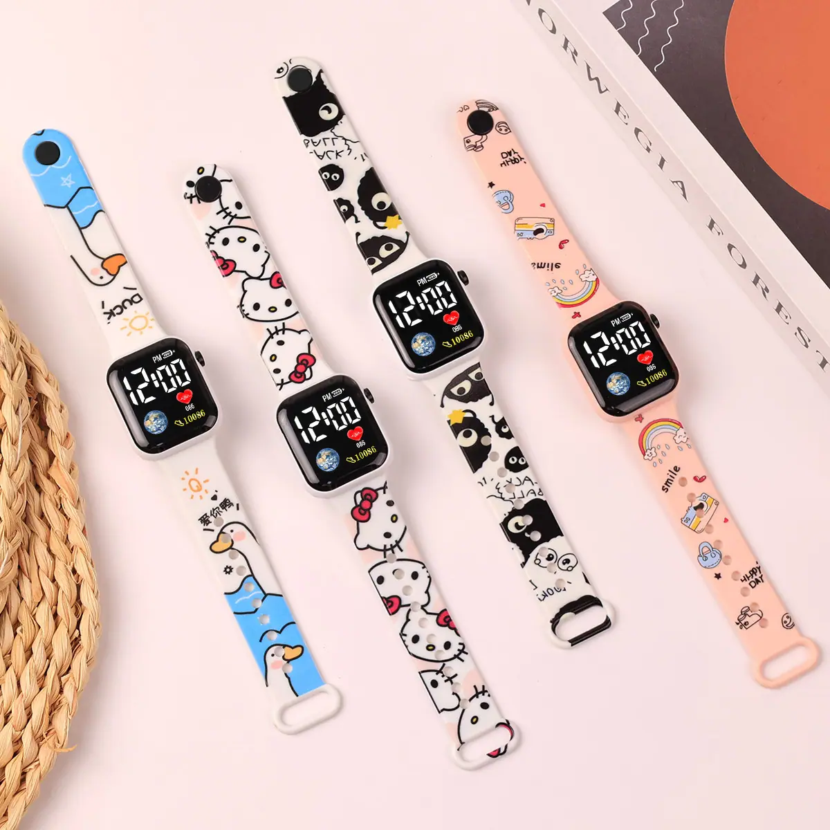 Nuevo reloj electrónico con estampado de dibujos animados, moderno, con botón LED, para exteriores, para estudiantes de primaria y secundaria, reloj con personalidad cuadrada.