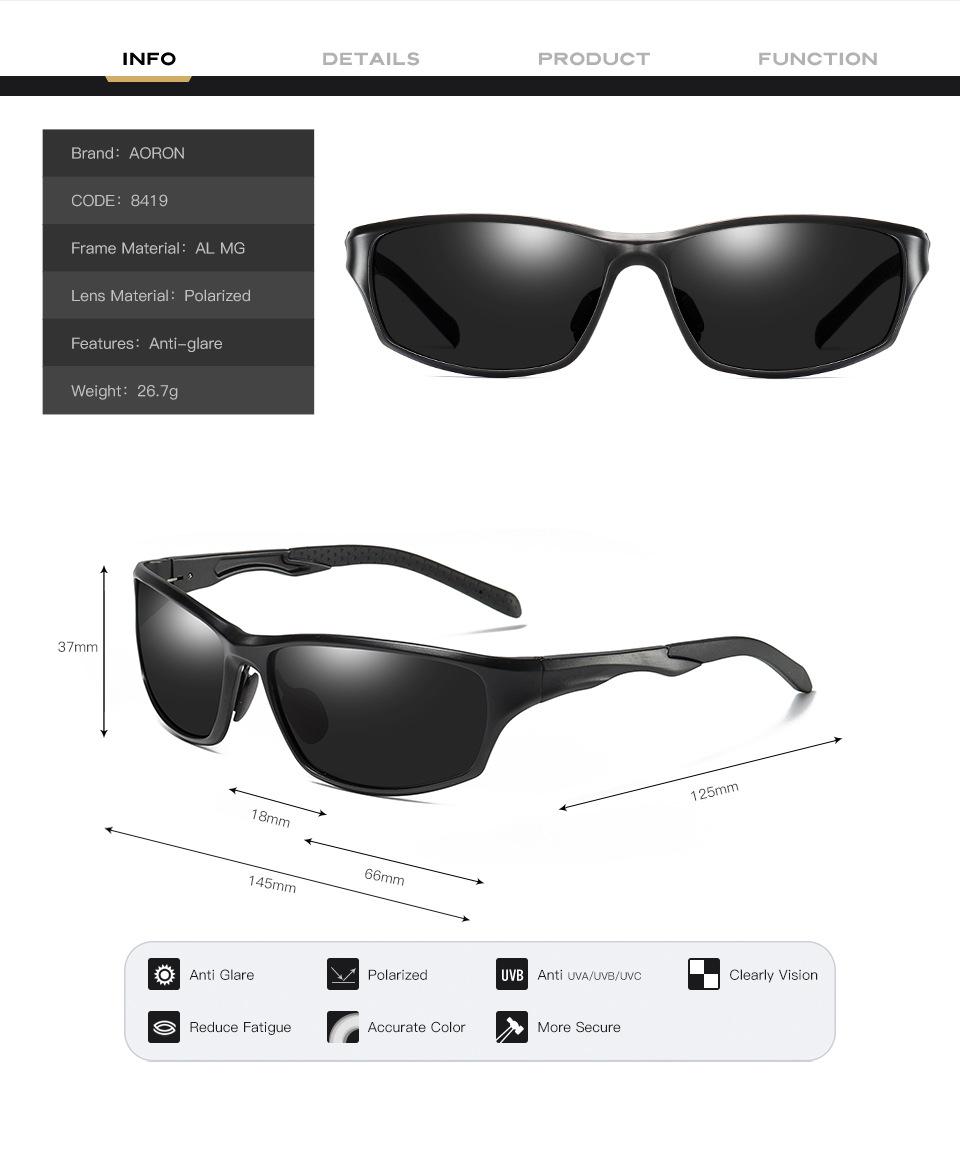 Estas gafas de sol polarizadas utilizan lentes reforzadas y engrosadas. Sus ventajas son la resistencia al desgaste, la buena flexibilidad, la alta resistencia a los impactos, la visión nítida y un buen efecto antideslumbrante.