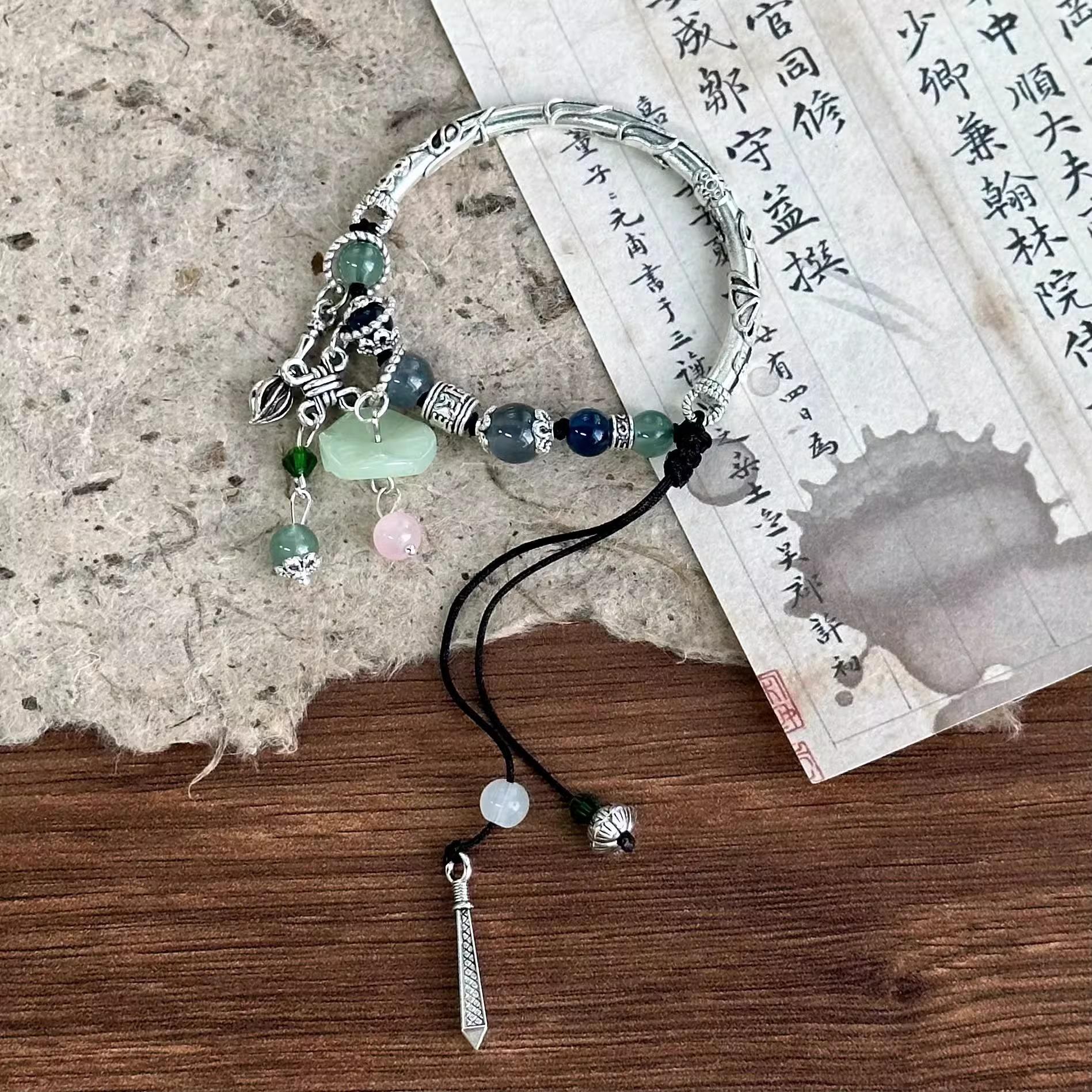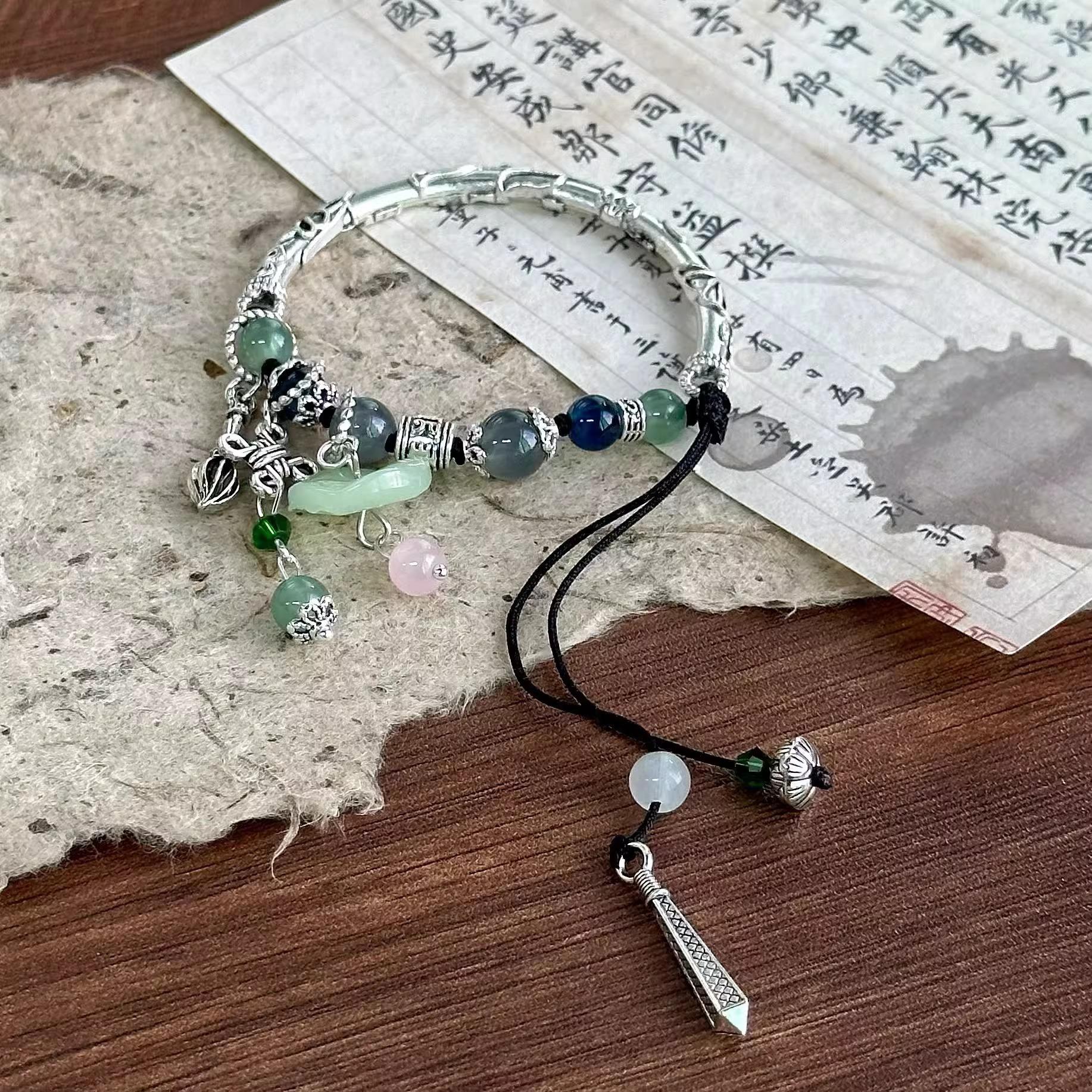 Pulsera Tejida Ajustable con Cuentas de Estilo Chino Nuevo para Mujer, Diseño Nicho, Estilo Antiguo, Joyería de Pulsera Fresca y Versátil