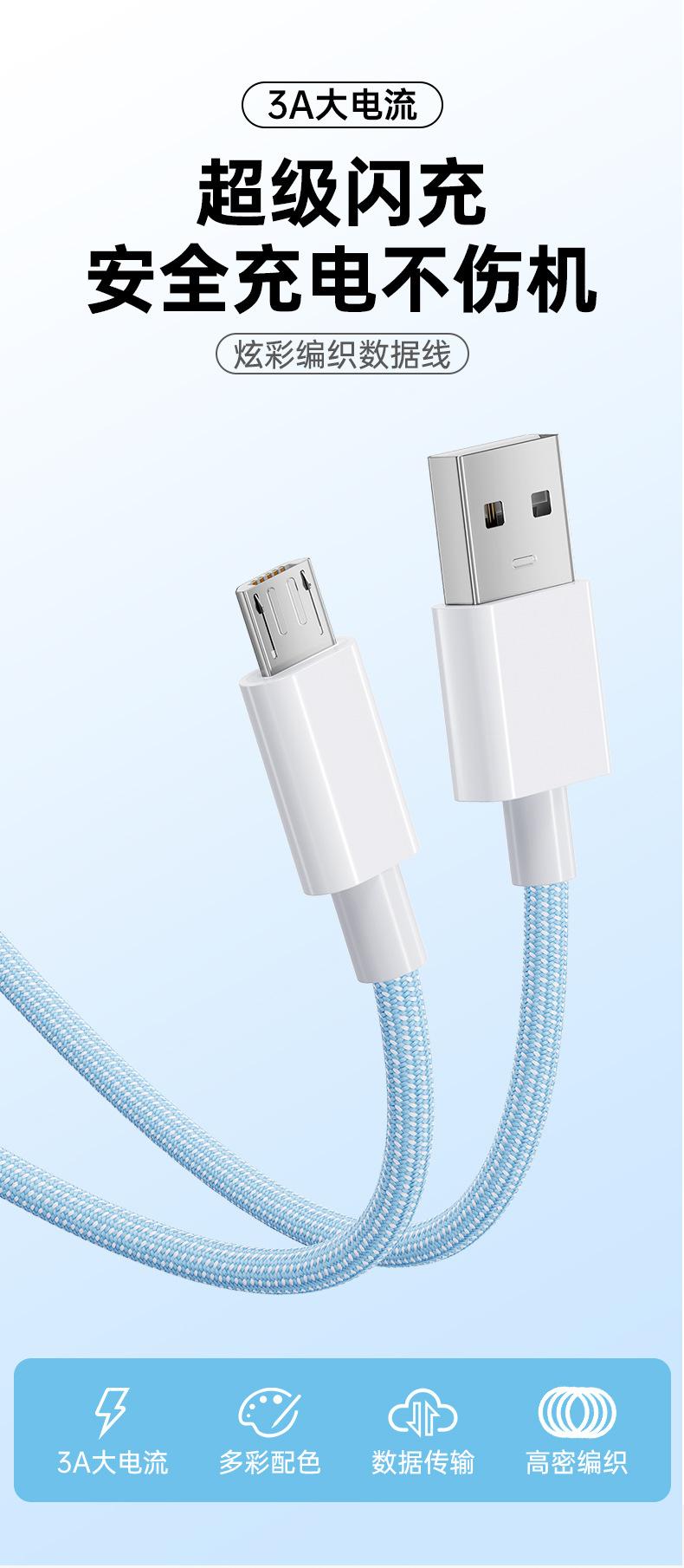 Cable de Datos de Carga Rápida Android Cable Cargador Micro USB 3A Adecuado para Xiaomi Oppo Huawei Honor Vivo Teléfono Móvil