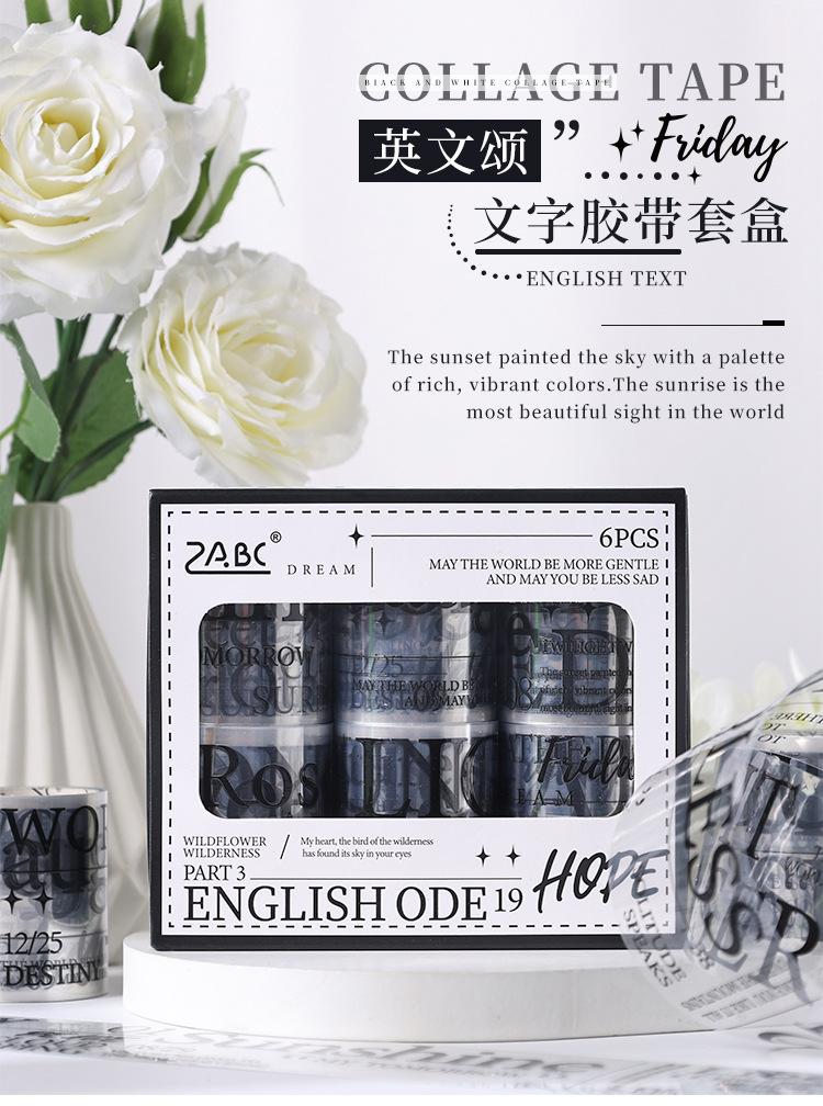 Yue Shi Nuevo Producto Oda Inglesa Caja de Regalo Traje Cinta para Diario de Mano Transfronteriza Cinta Impermeable Adhesivo para Paisajismo de Texto para Diario de Mano Volumen