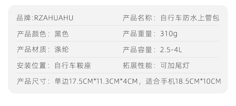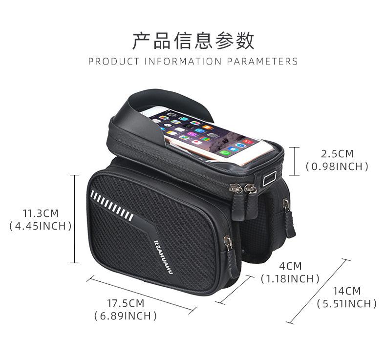 Nombre del producto: Bolsa para tubo de bicicleta, bolsa de doble cara.