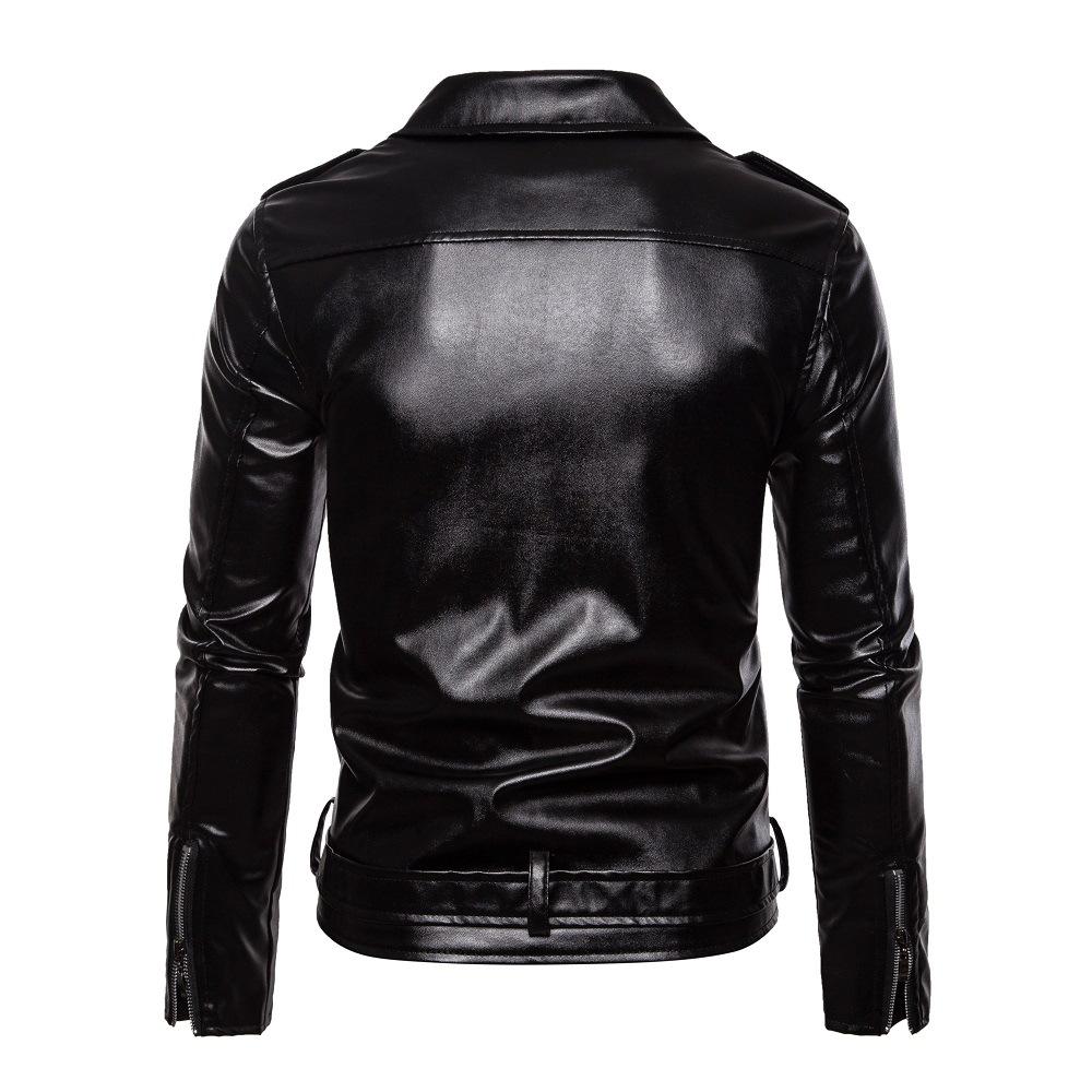 Chaqueta de cuero con solapa para hombre, estilo europeo y americano, otoño e invierno de 2020, con cremallera informal de negocios y decorativa para motocicleta.