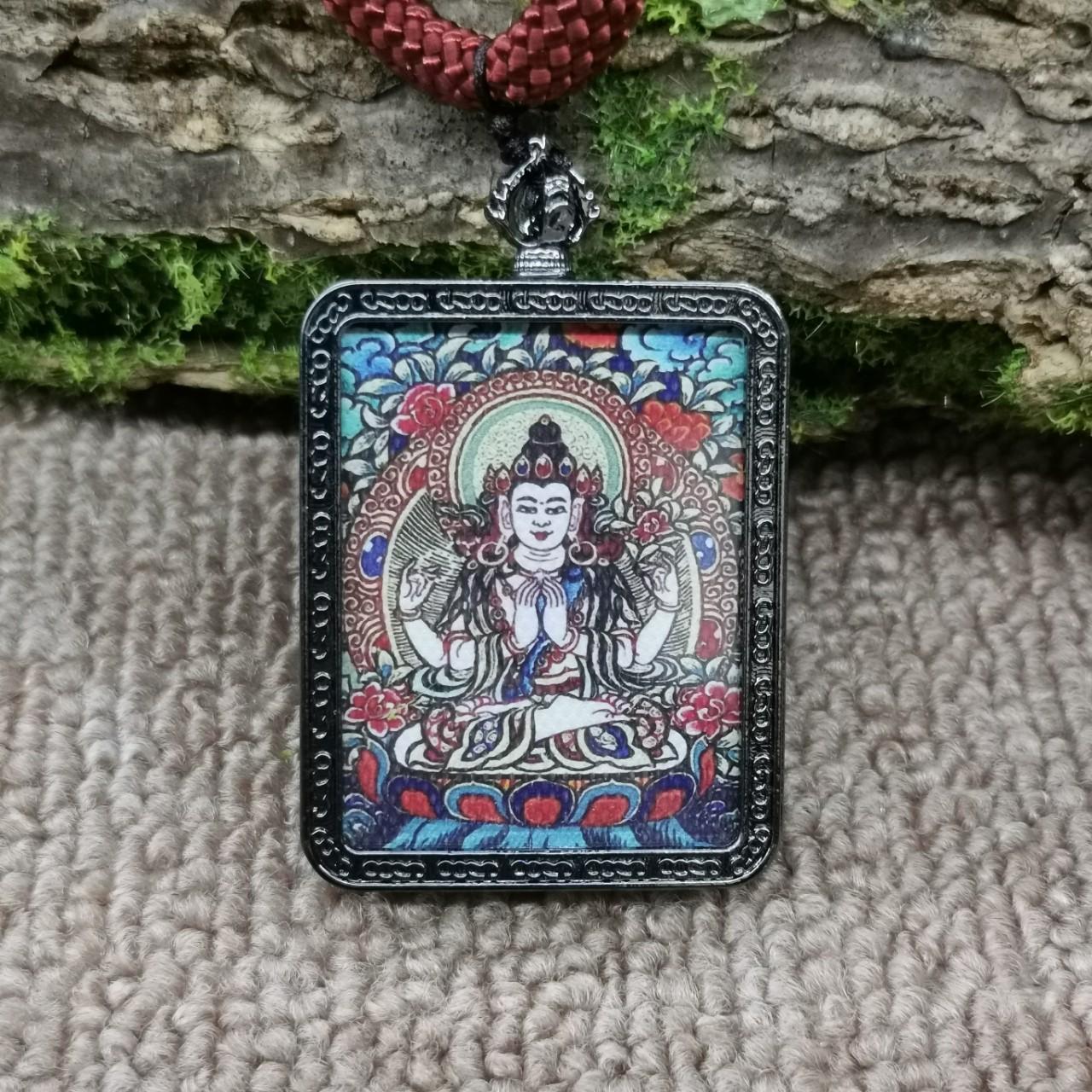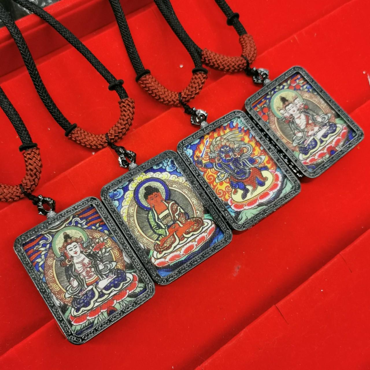 Nuevo 2022 Xizang ocho Guardianes colgante thangka negro plomo Kagyu caja negra llevar pequeño colgante thangka adornos para hombres y mujeres