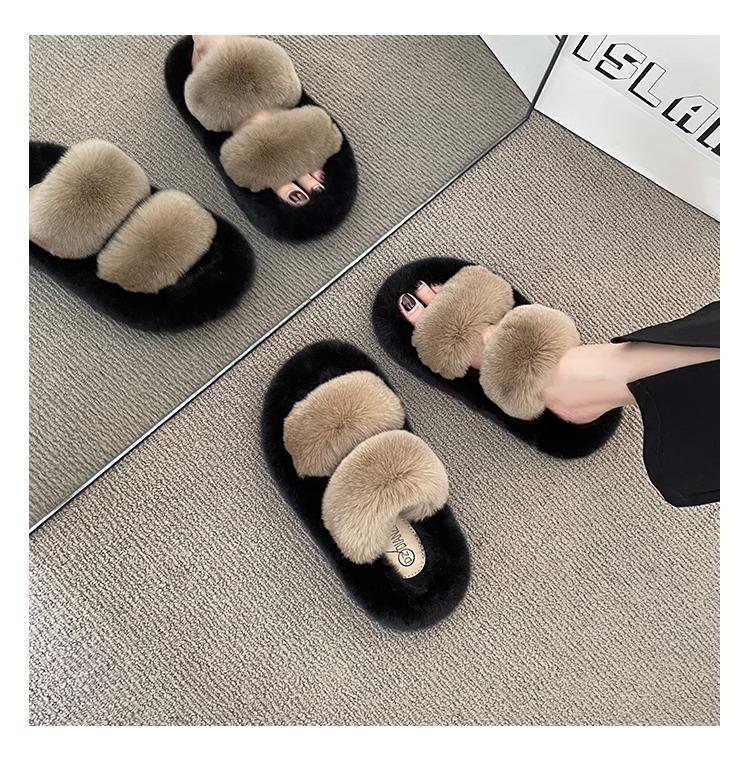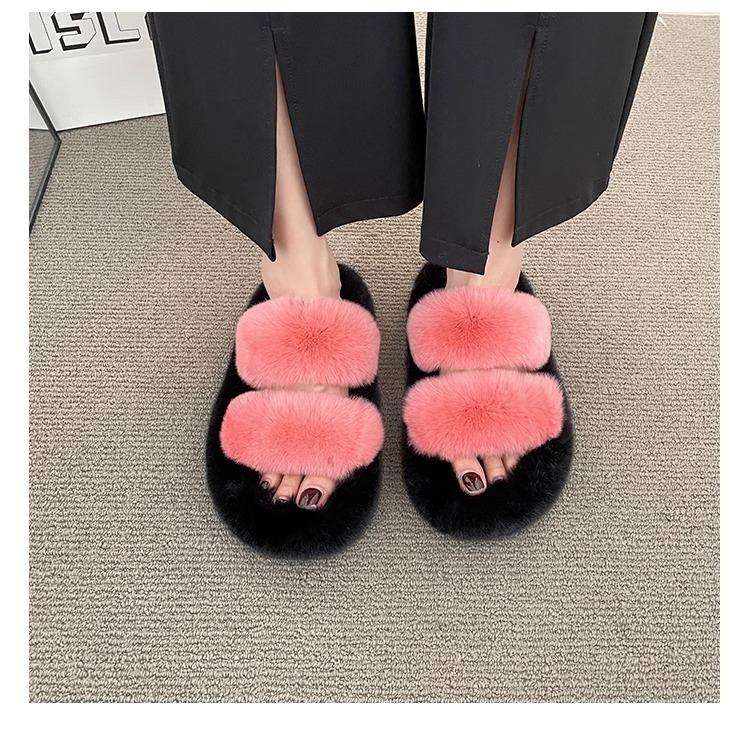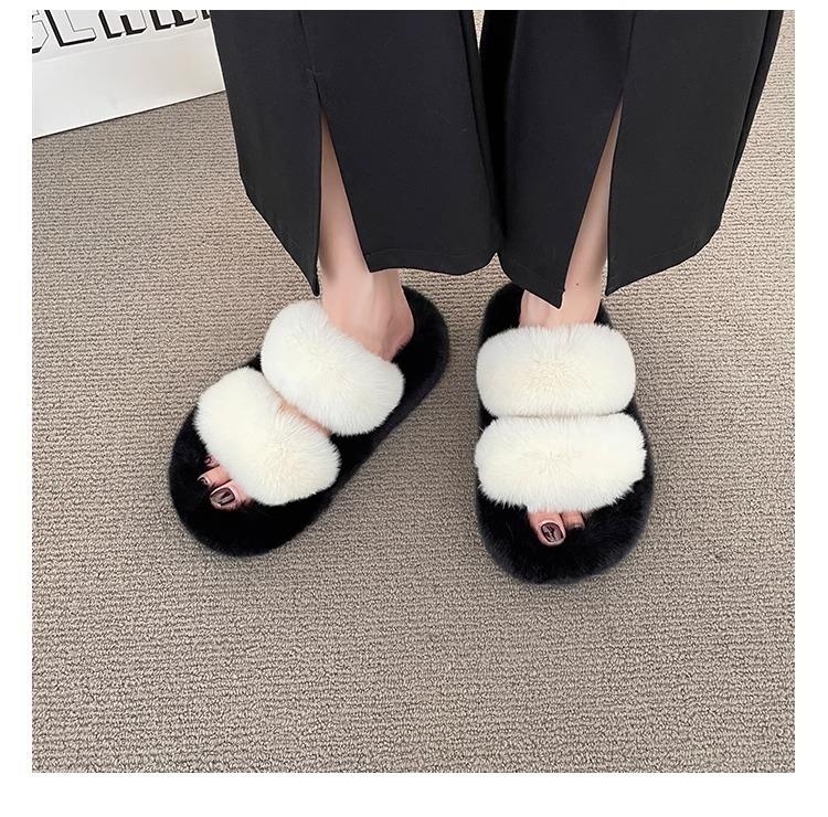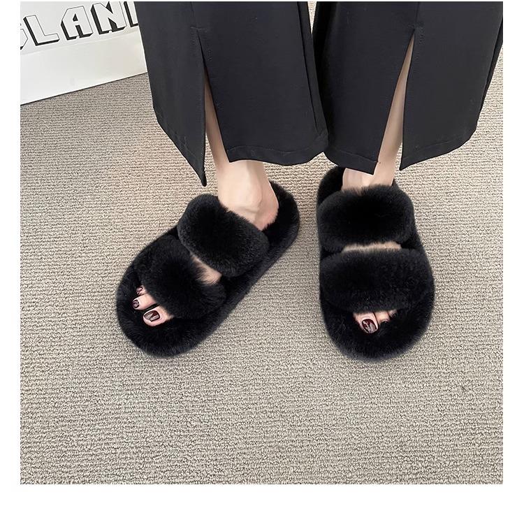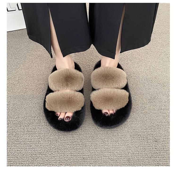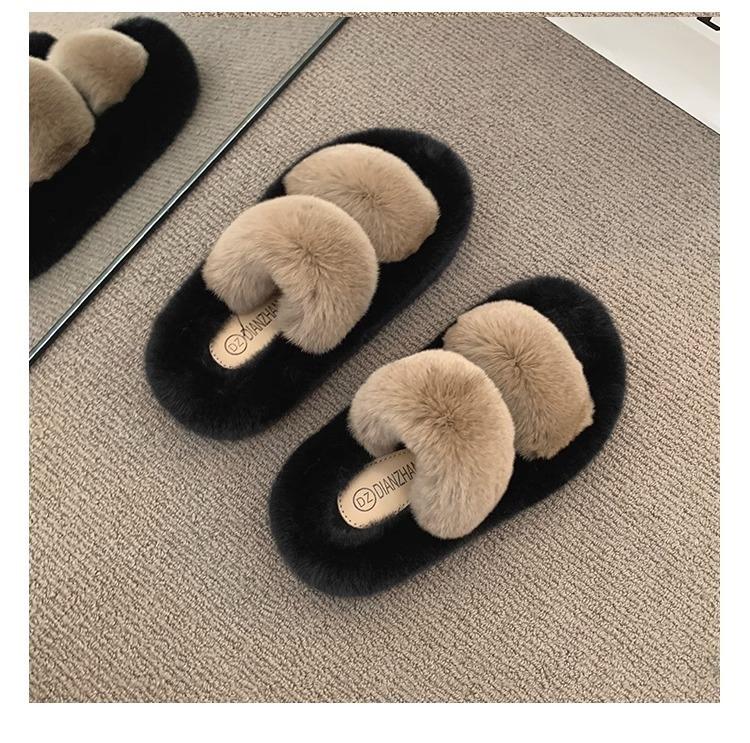 Pantuflas Mao Mao para mujer, ropa de abrigo, otoño e invierno, 2024, pantuflas cruzadas de felpa, pantuflas de algodón de gran tamaño para el hogar.