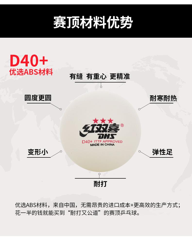 Pelota de tenis de mesa Red Double Happiness de 1 estrella, 2 estrellas y 3 estrellas, duradera, de nuevo material, de grado militar, D40 + mm