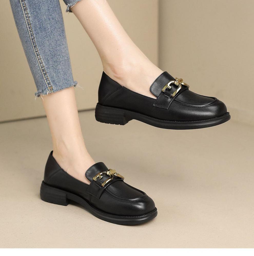 Mocasines de mujer primavera 2024 nuevos zapatos planos de mujer zapatos individuales todo fósforo suela suave cuero suave primavera y otoño zapatos pequeños de cuero