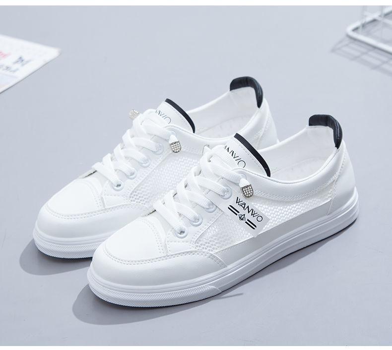 Zapatos blancos para mujer, primavera y verano 2024, nuevos zapatos deportivos casuales de malla transpirables de moda para mujer, zapatos blancos, zapatillas planas.