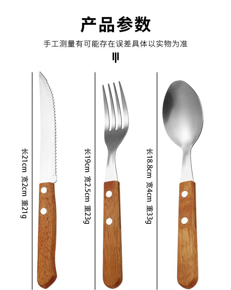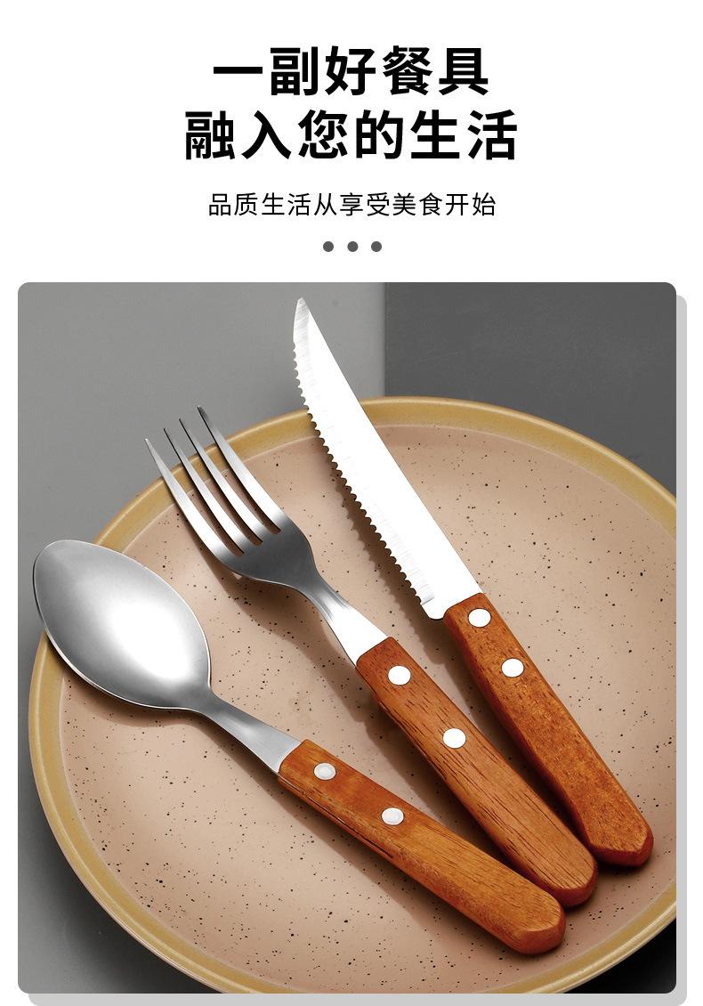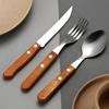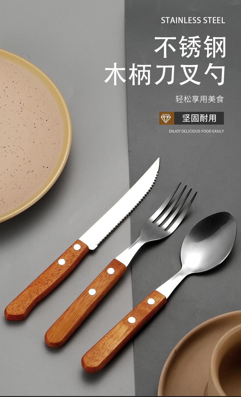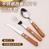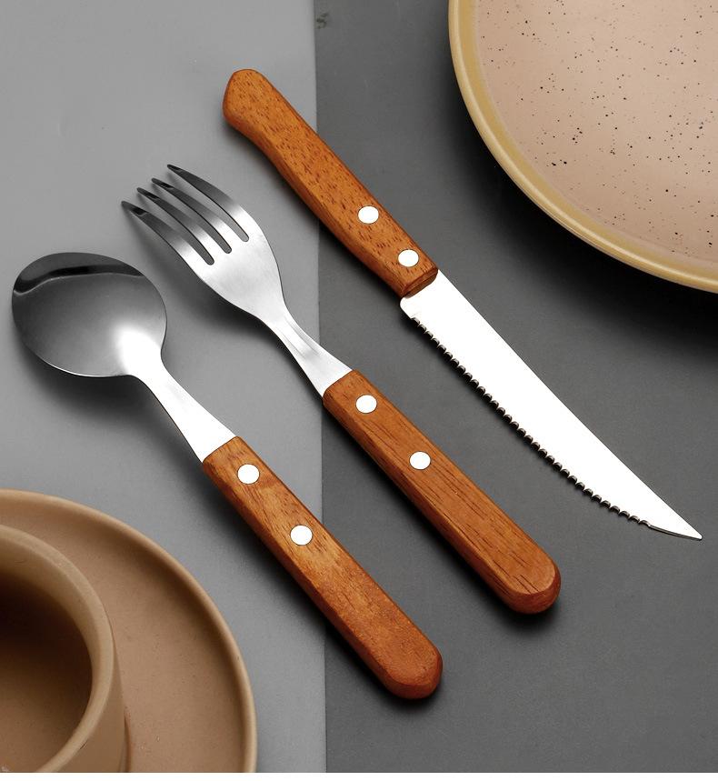 Palillos de Acero Inoxidable, Vajilla Occidental, Cuchara para Cena, Cuchillo para Bistec, Juego de Tres Piezas, Juego de Cucharas con Mango de Madera, Venta al por Mayor de Tenedores y Cucharas