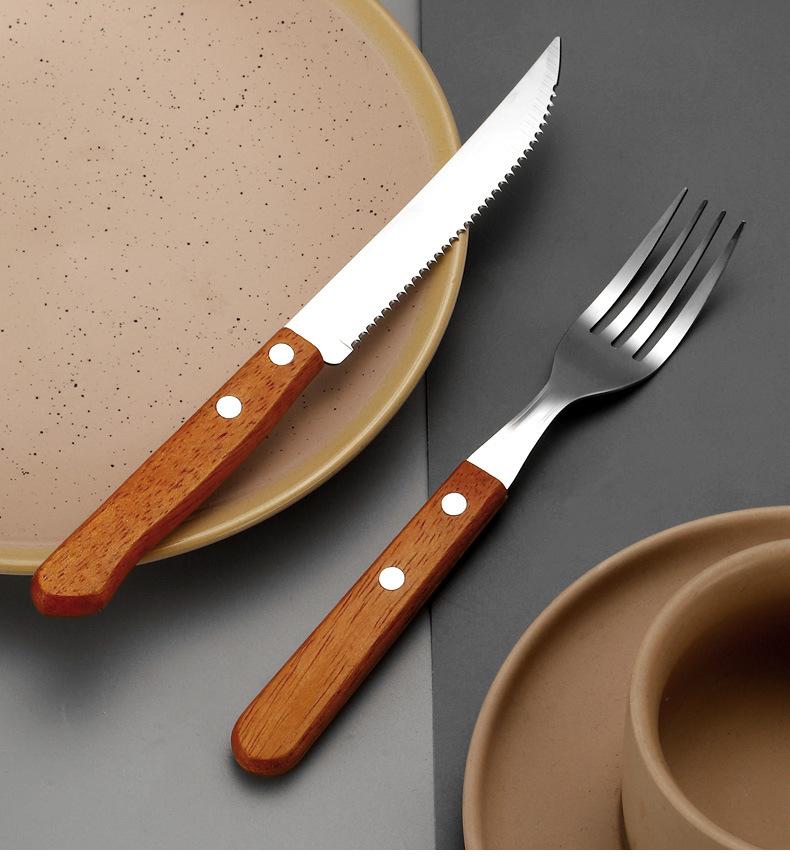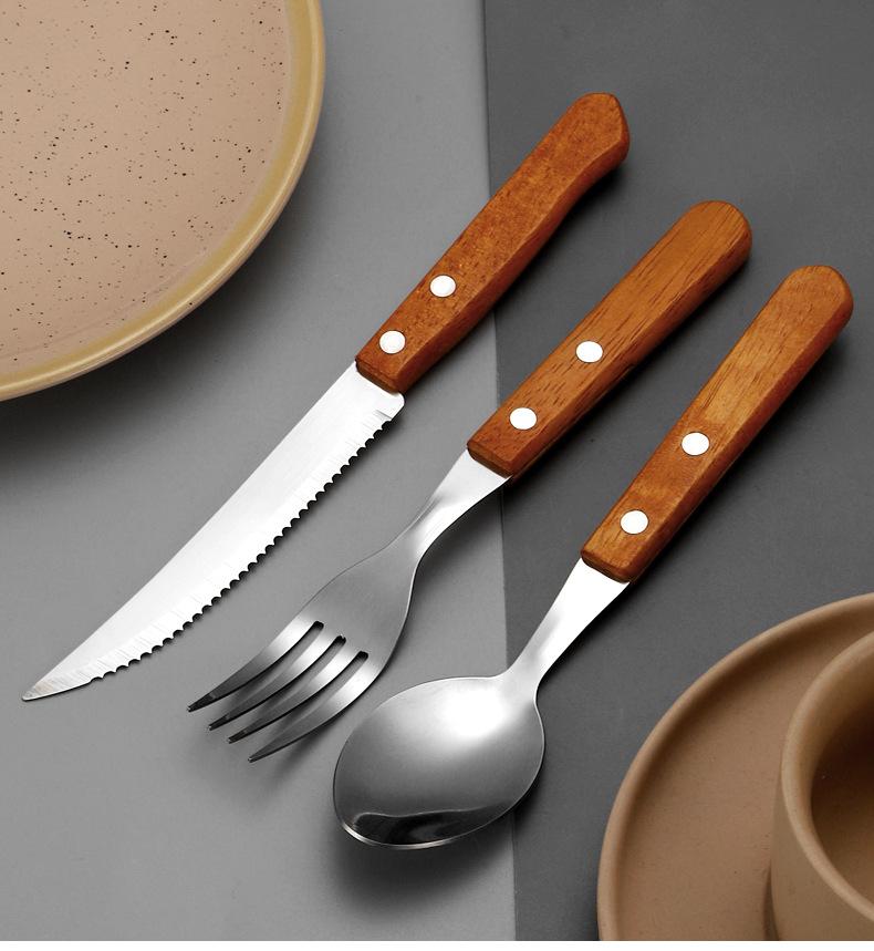 Master knife-wooden handle, Main Fork-Wooden Handle, Main meal spoon-wooden handle, Three-piece set-wooden handle