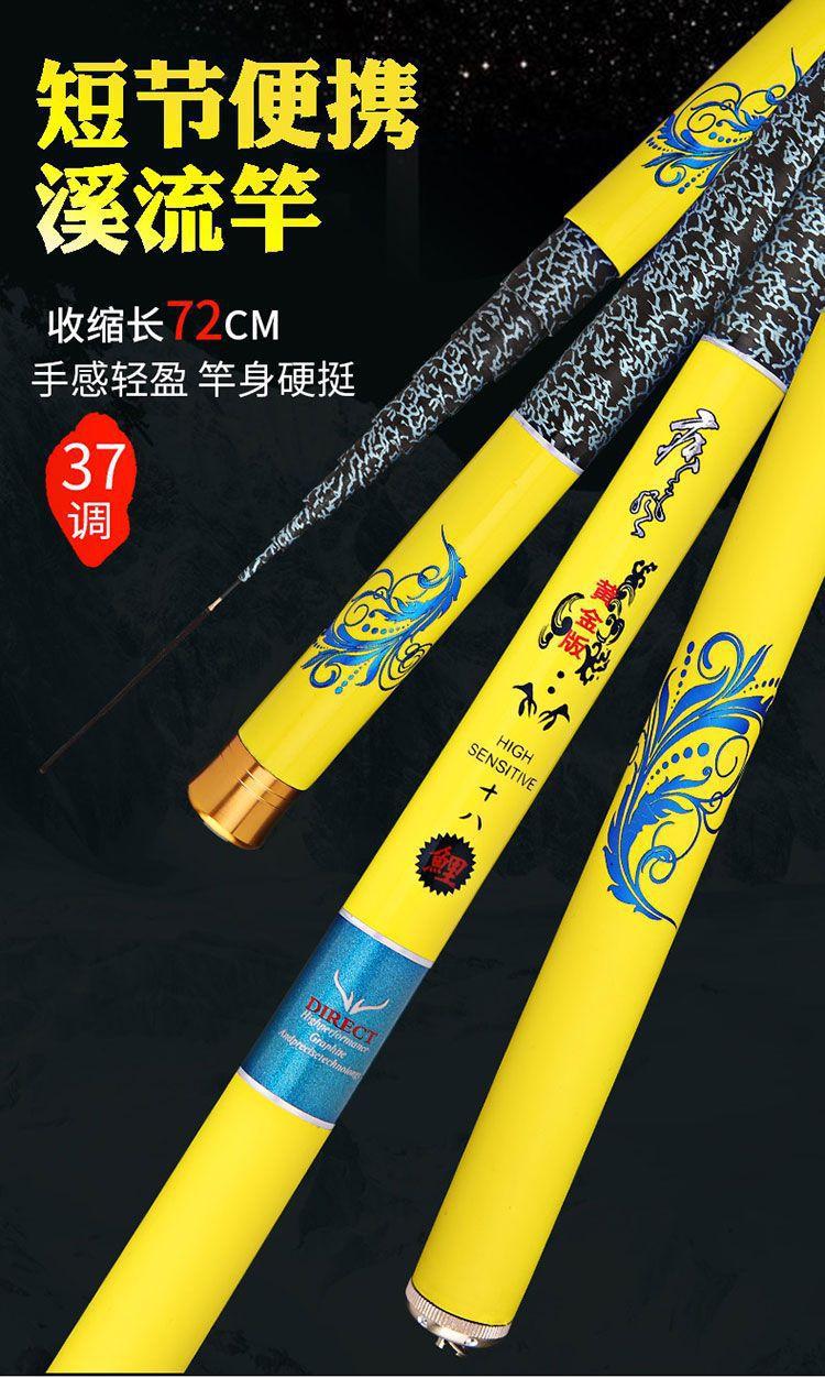 Caña de pescar de sección corta de carbono, caña de pescar Creek, caña de pescar de carbono superdura y ligera, funda de mano, caña de pescar de carpa afinada de 28".