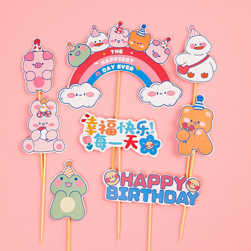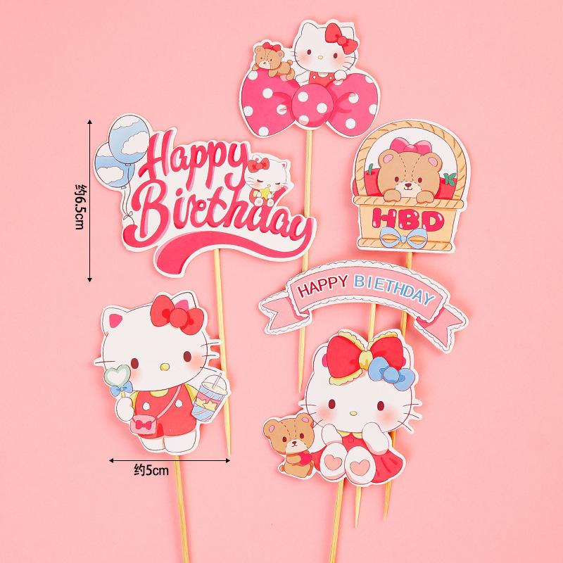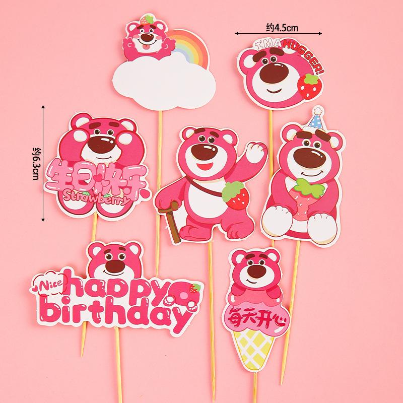 Celebridad en línea, oso de fresa, feliz cumpleaños, decoración de pastel, complemento de dibujos animados, gato KT, tarjeta de perro Yugui, niños, hornear, vestir