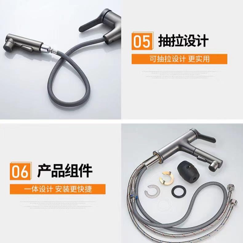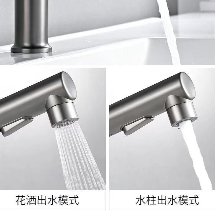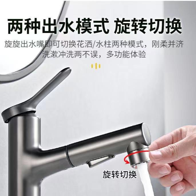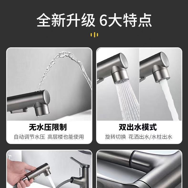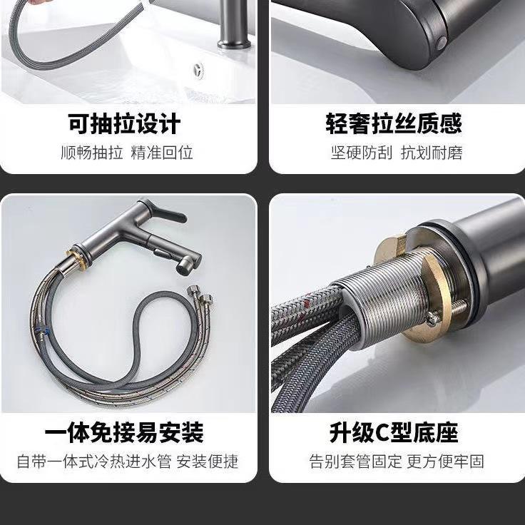 Grifo de lavabo extraíble de cobre puro transfronterizo, para baño doméstico, mezcla de agua fría y caliente, multifuncional, telescópico