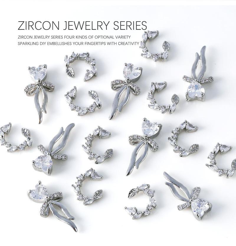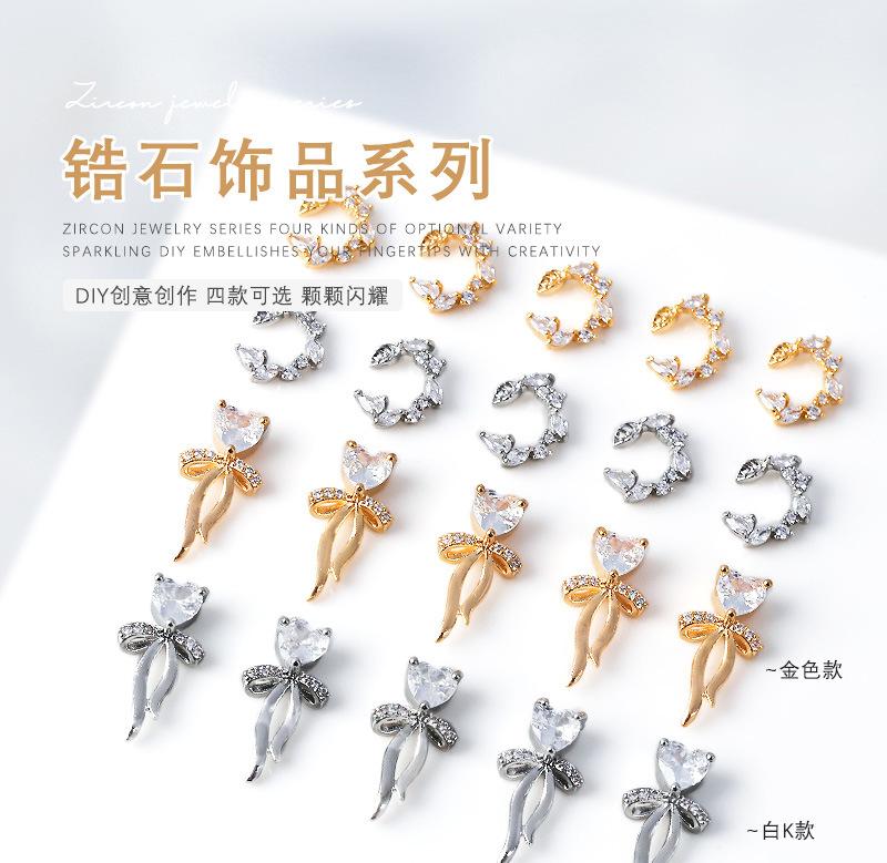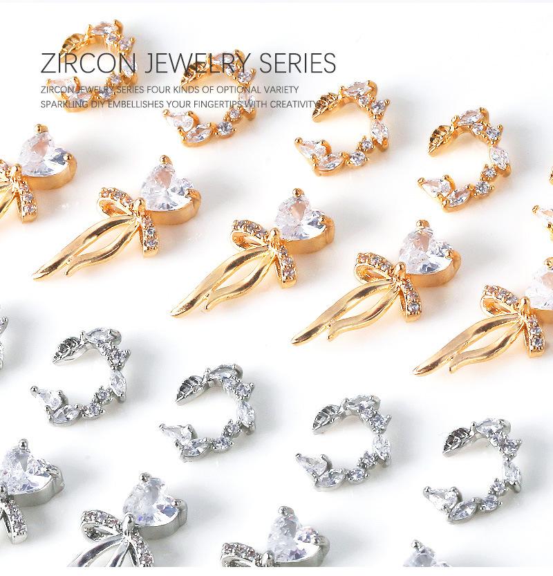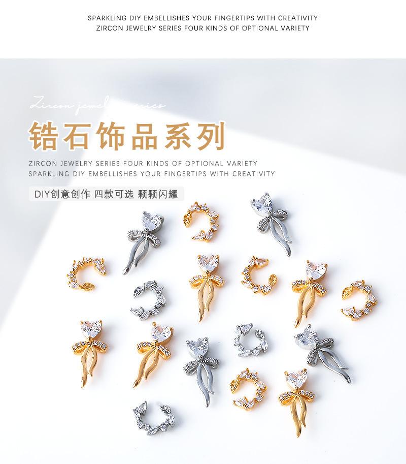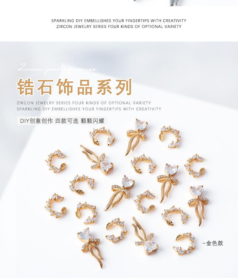Compra Joyería para uñas con lazo de diamantes y circonitas, aleación francesa, cinta de amor, diamantes, oro, plata y circonitas. al por mayor en Joom.pro