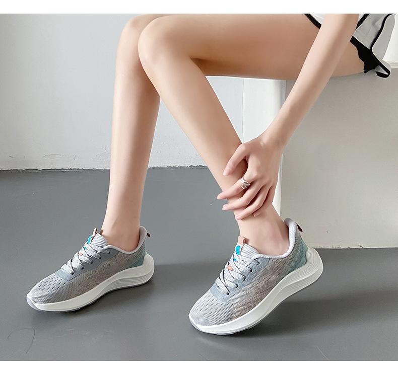 Zapatos de mujer 2024 nueva moda transpirables tenis tejidos con mosca cómodos de suela gruesa zapatos para viajar vivir con los mismos zapatos casuales de mujer