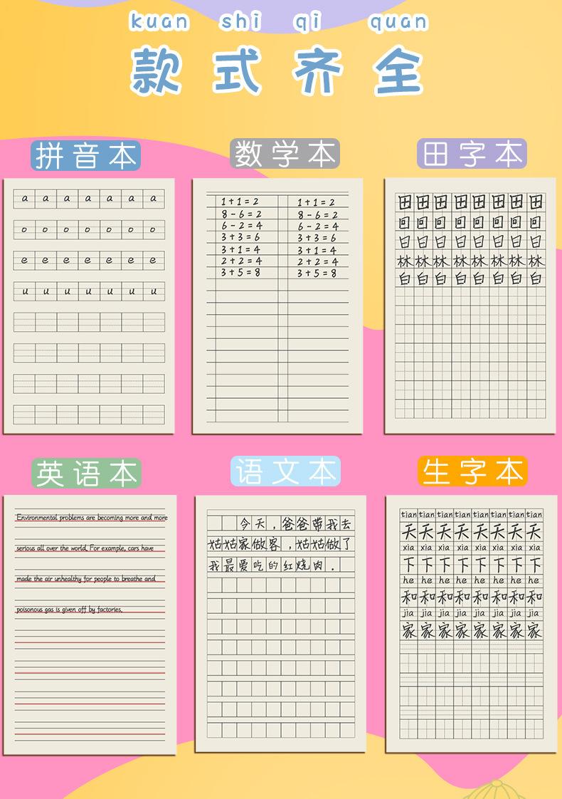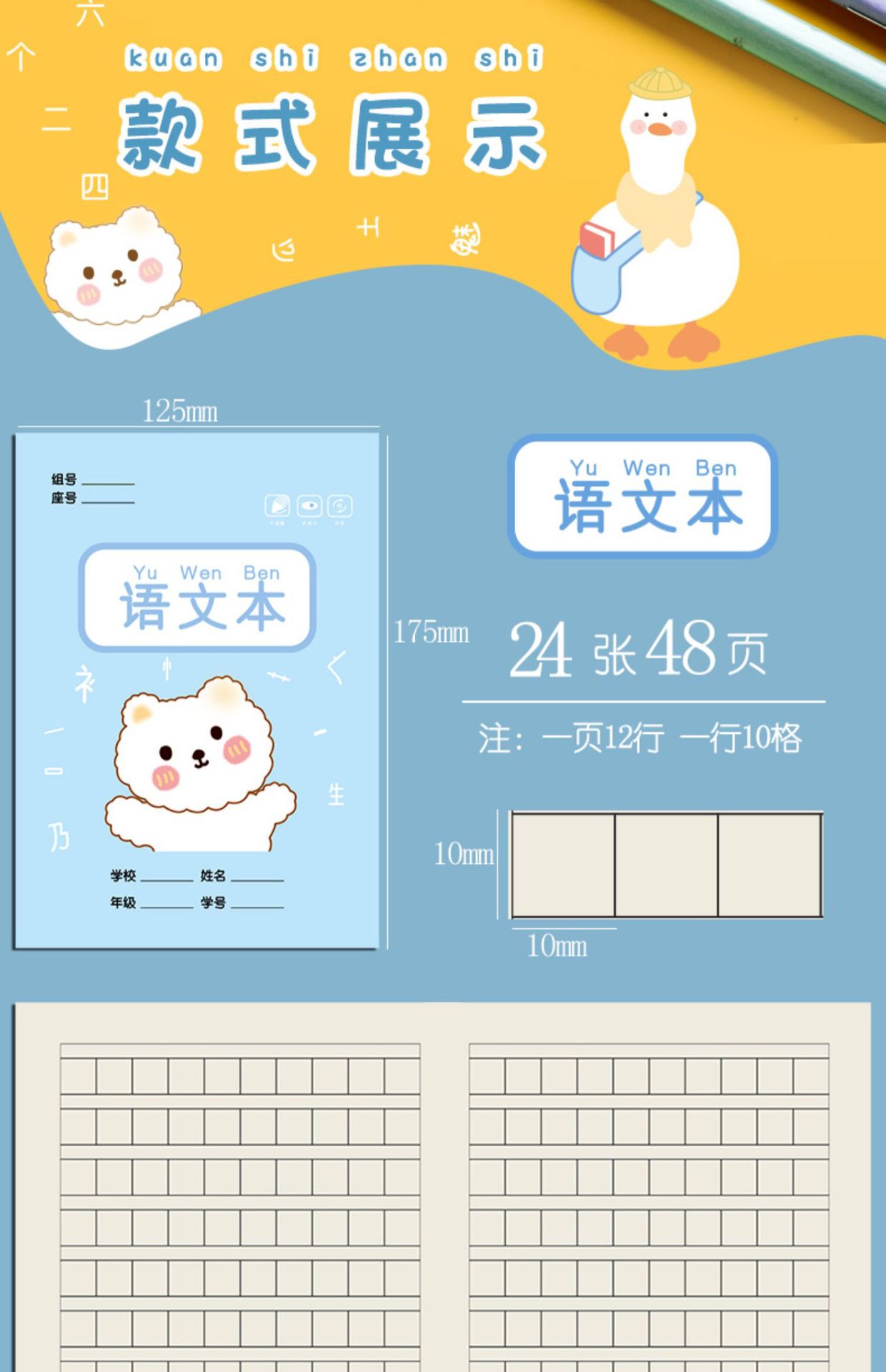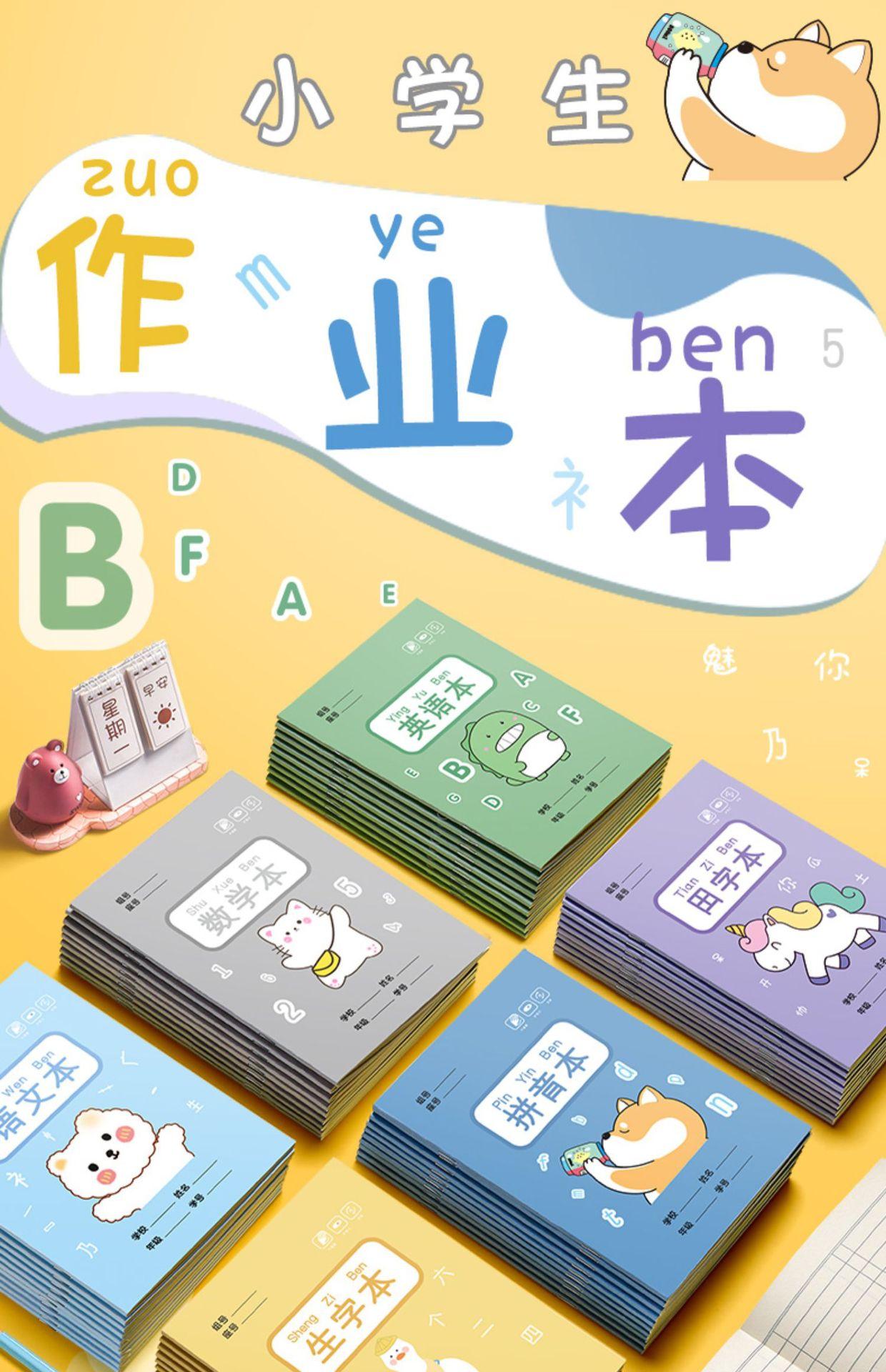 Libro de escritura de nuevas palabras en pinyin, matemáticas en inglés, cuaderno de ejercicios chino, pequeño, fresco, para estudiantes de la escuela primaria unificada nacional, libro de cuadrícula Tian Zi