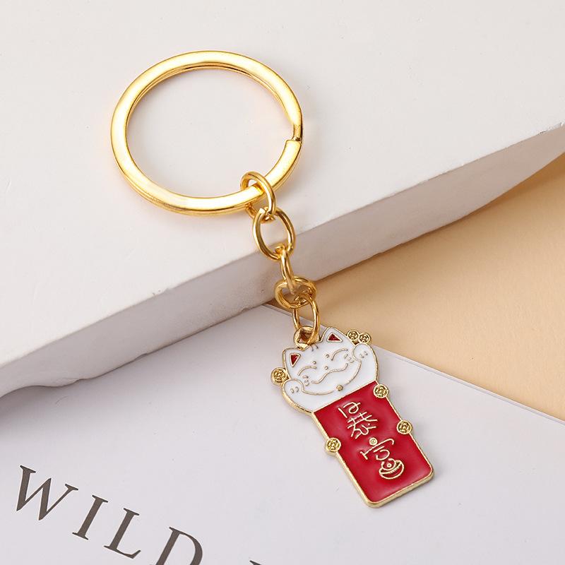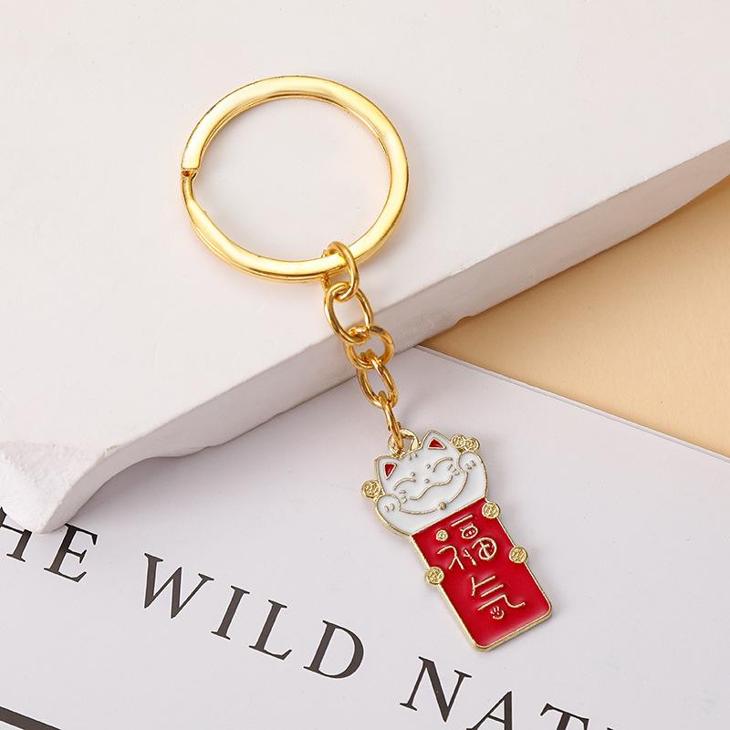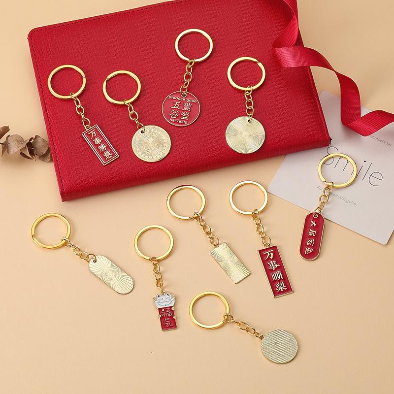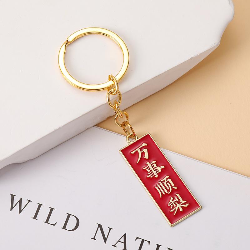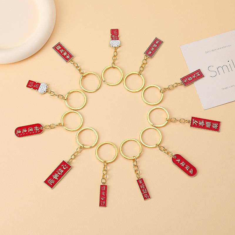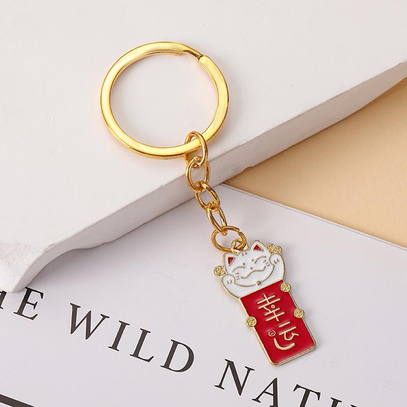 (lucky cat) get rich keychain, (rectangular) peace and joy keychain, (rectangular) good luck keychain, (round)...