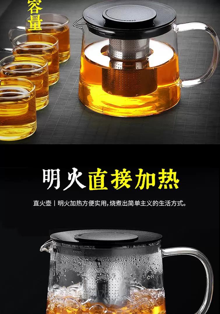 Tetera de vidrio para uso doméstico, tetera individual, resistente a altas temperaturas, con filtro para hervir té, tetera pequeña