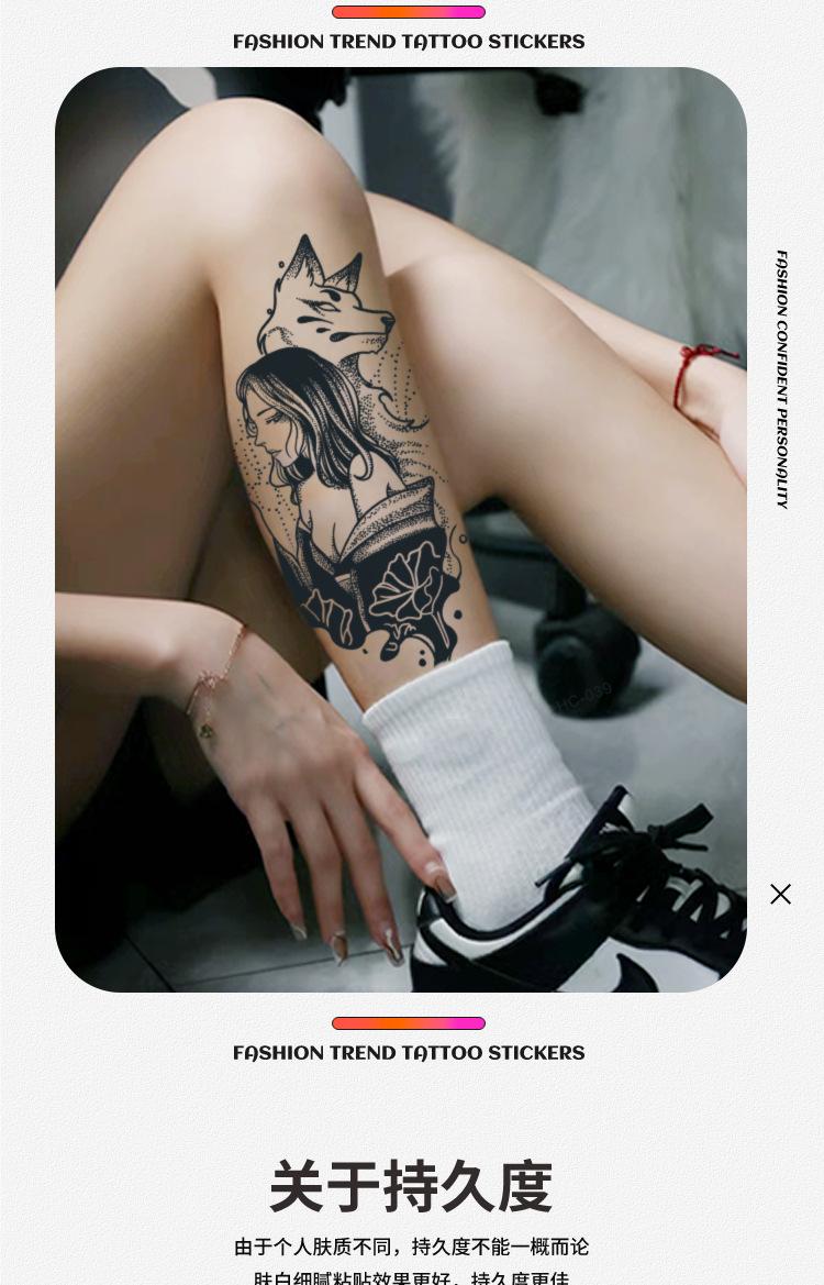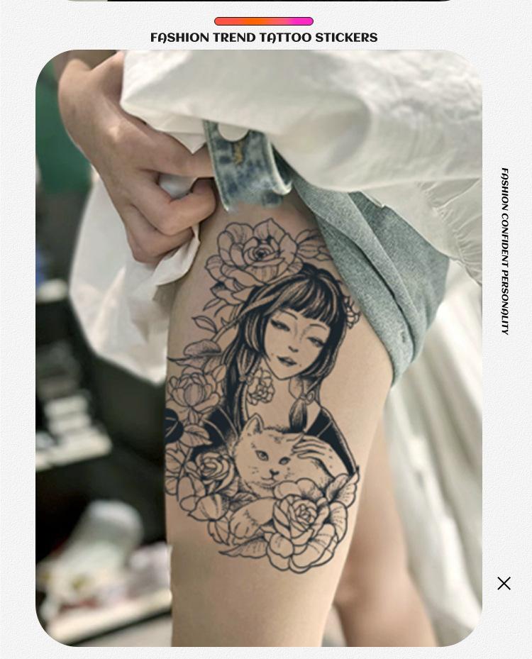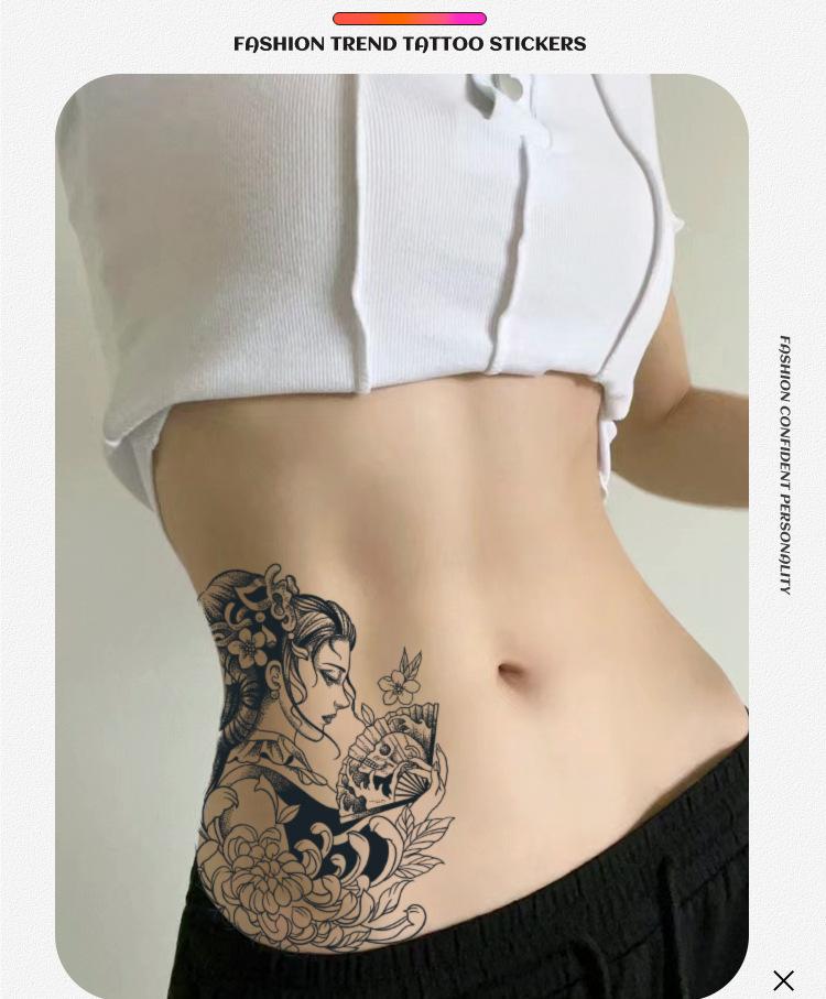Calcomanía de Tatuaje de Geisha Herbal Semipermanente Impermeable para Mujer Larga Duración Simulación Masculina Sentido de Alto Nivel Tatuaje Flor Brazo Cintura Calcomanía