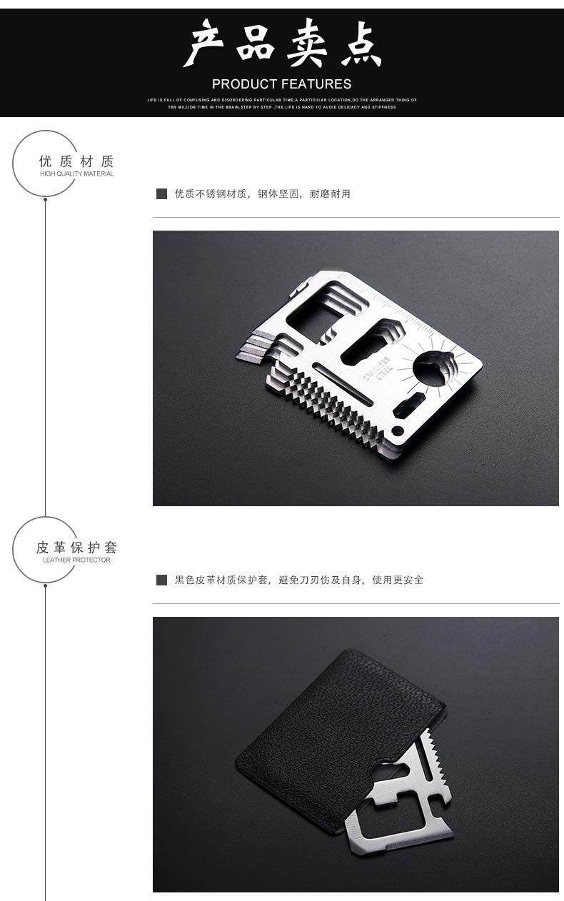 Suministros para acampar al aire libre cuchillo militar multifuncional tarjeta tarjeta de crédito herramienta portátil tarjeta cuchillo plegable con funda de cuero