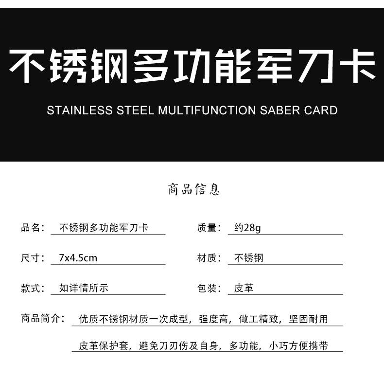 Car supplies, Saber card, leather case for free, survival, beer bottle opener, Sabre card, black leather case,...