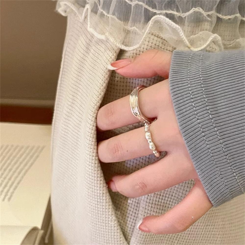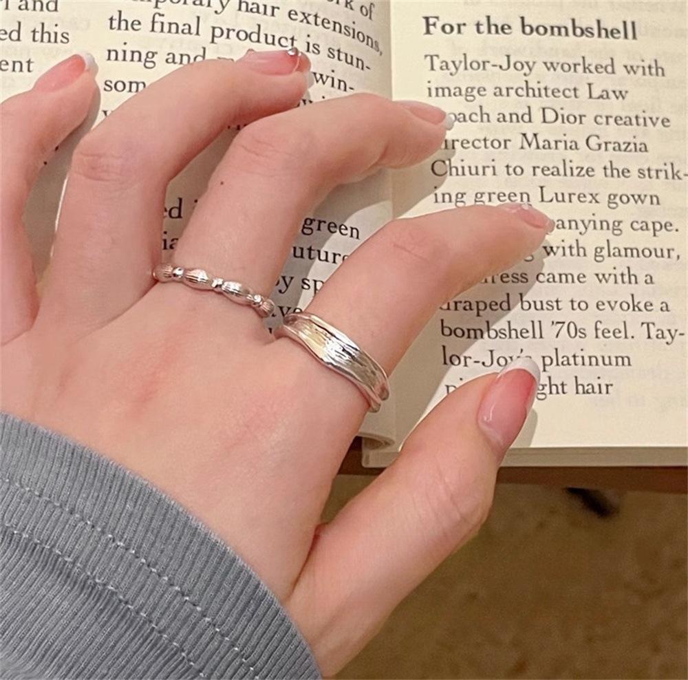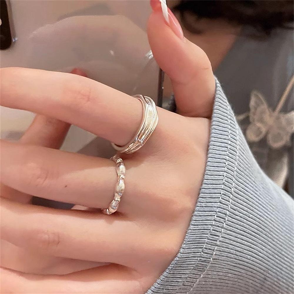 Anillo de plata de ley con textura y diseño de nicho para mujer, sencillo, ligero, de lujo, con gran sentido del tacto, personalizado, ajustable, joyería de moda.